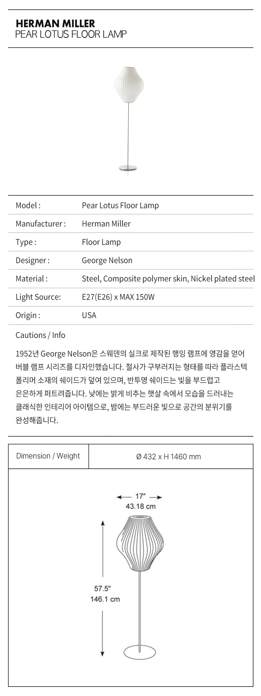 허먼밀러 페어 로터스 플로어 램프 (미디움) / Herman Miller Pear Lotus Floor Lamp (medium)