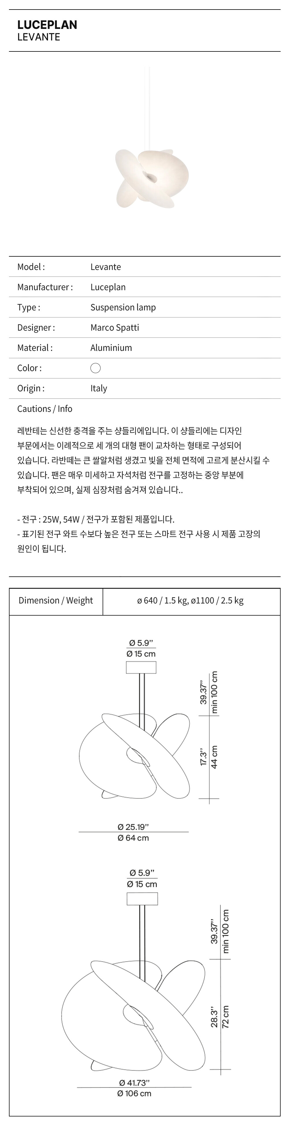 루체플랜 르반떼 서스펜션 램프 / Luceplan Levante Suspensionlamp