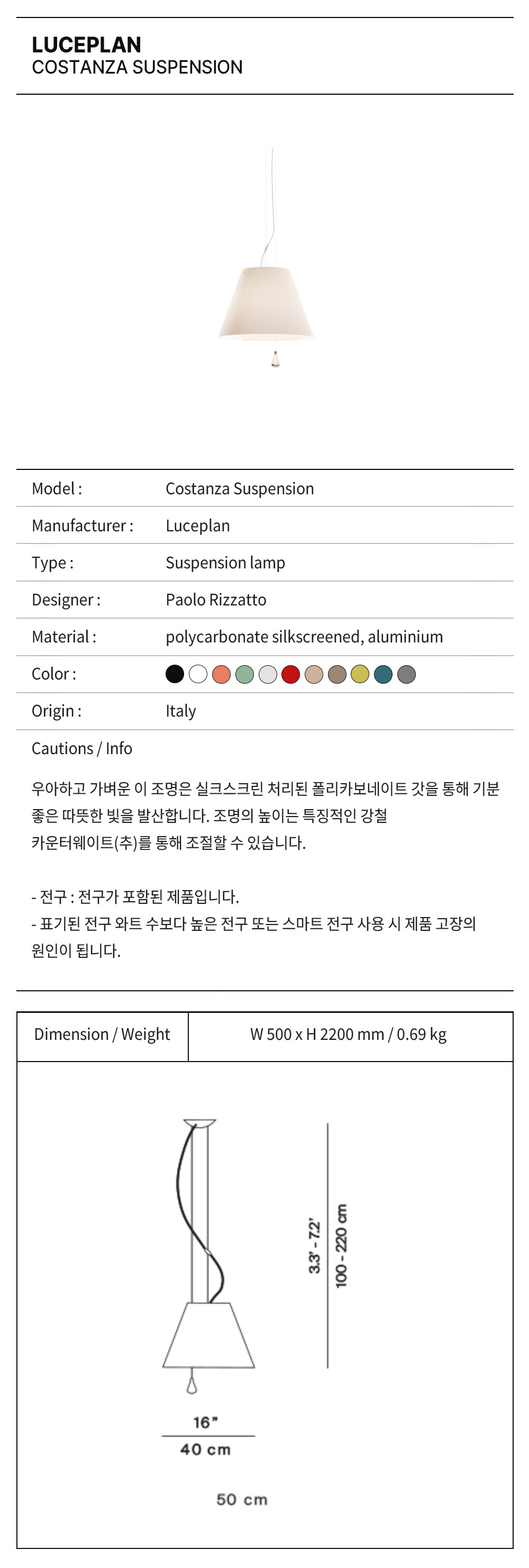 루체플랜 코스탄자 서스펜션 램프 / Luceplan Costanaza Suspension lamp