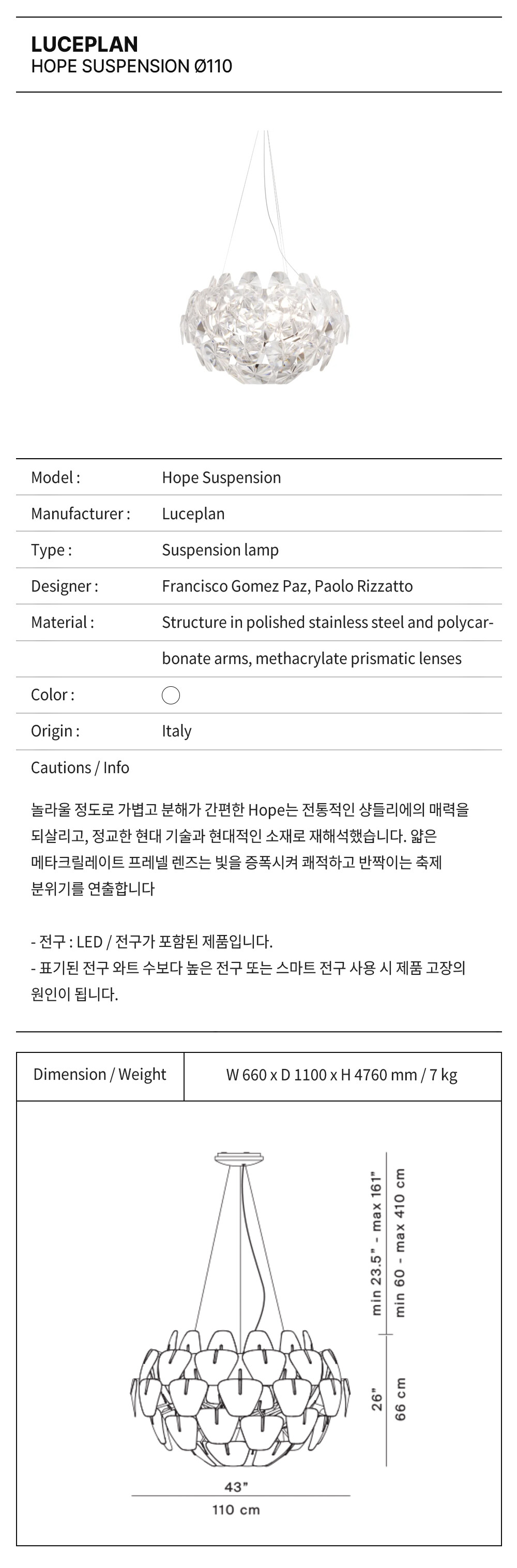 루체플랜 호프 42 펜던트(대) 램프 / Luceplan Hope 42 lamp