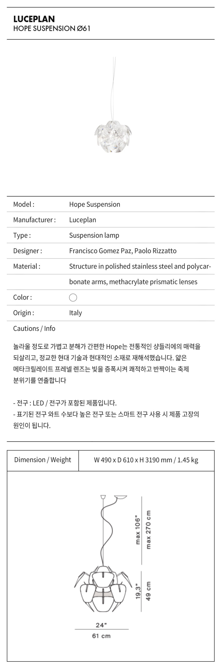 루체플랜 호프 12 펜던트(소) 램프 / Luceplan Hope 12 Sespension Small lamp