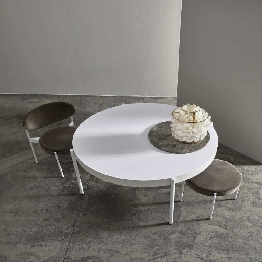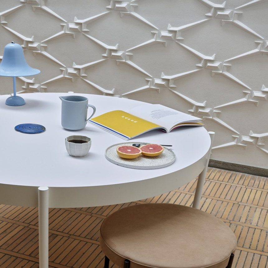 판톤은 모두가 중앙에 앉을 수 있도록 원형 시리즈 430 테이블 을 디자인했습니다.