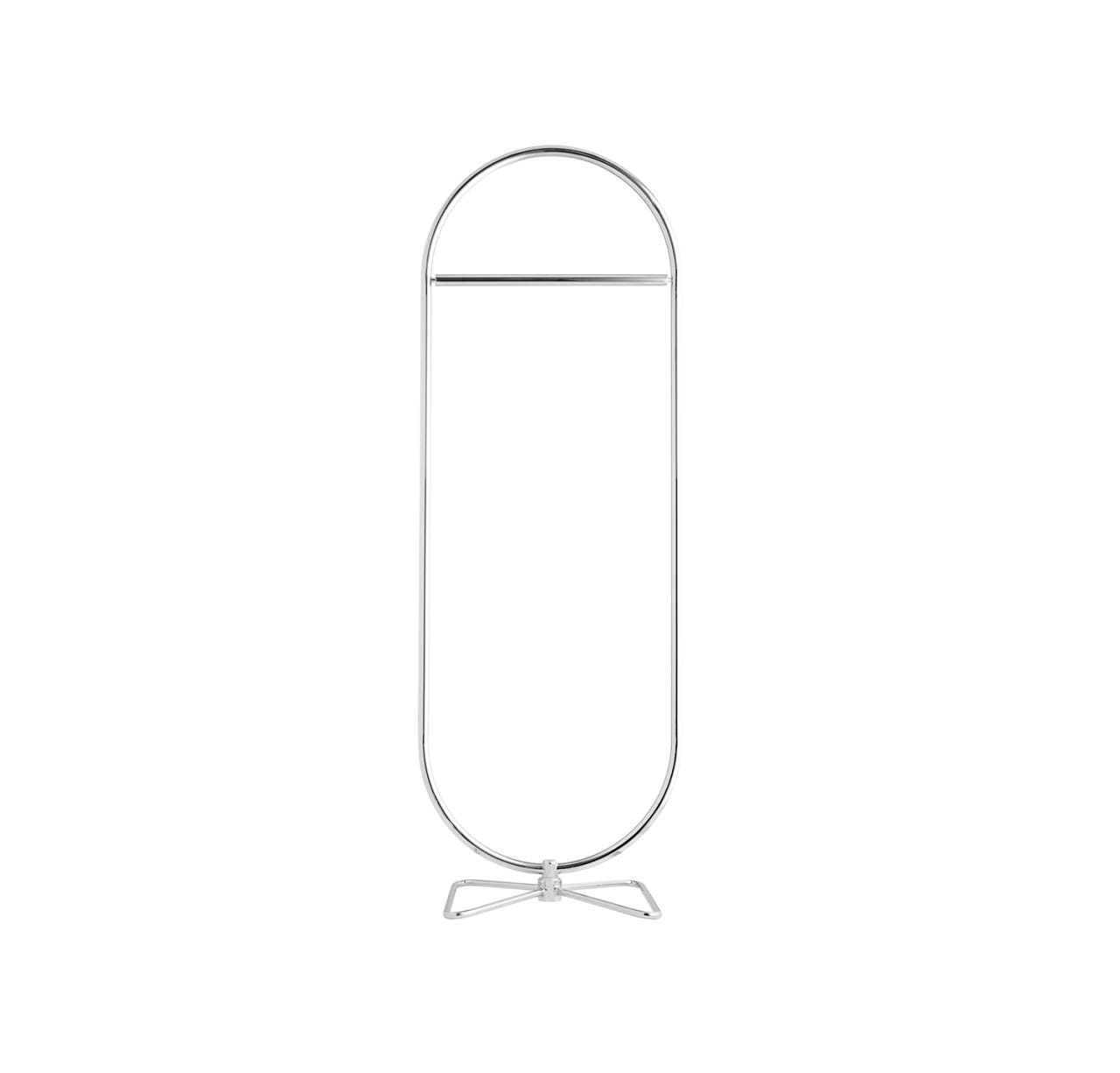 타원형의 크롬 도금 프레임에 행거가 결합된 구조로, 전체적으로 간결하면서도 고급스러운 인상을 줍니다.