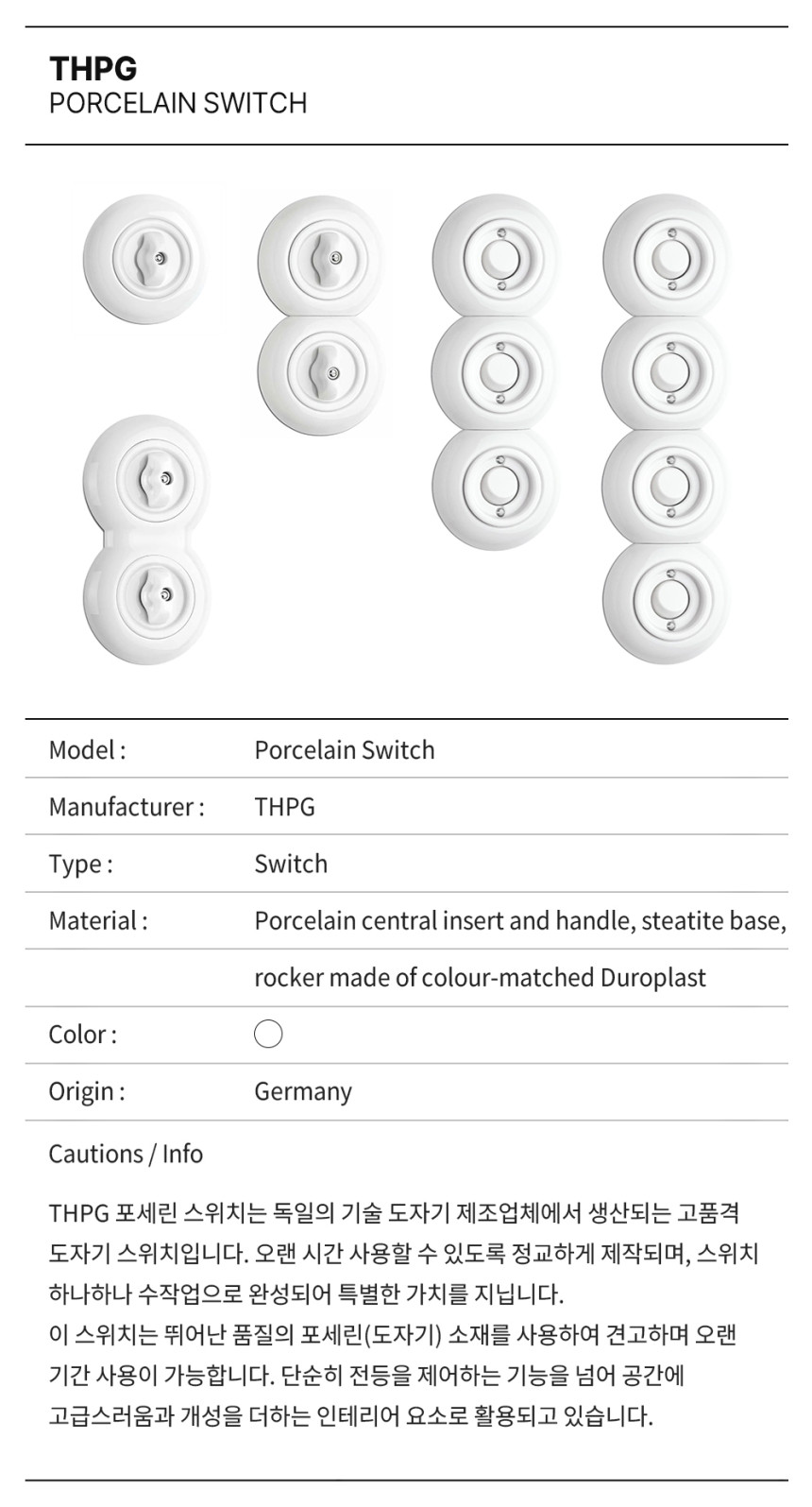 THPG 포쉐린 스위치(화이트) / THPG Porcelain Switch-White
