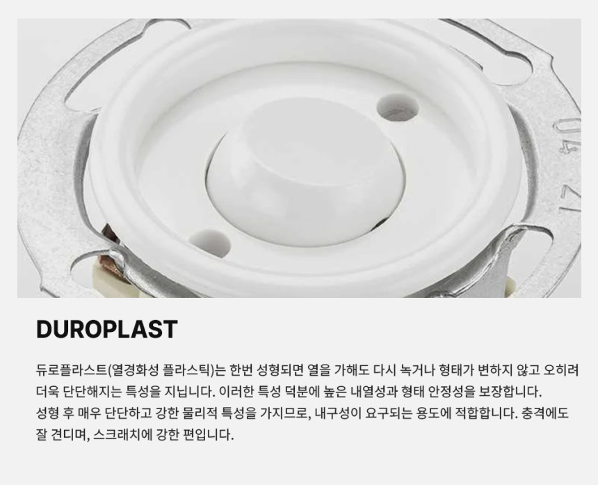 KC 안전 인증받은 제품으로 베이클라이트, 유리, 자기와 같은 견고한 전통적인 소재들을 사용하여 제품을 제작합니다. 이러한 소재들은 시각적인 아름다움뿐만 아니라, 각각의 용도에 맞는 탁월한 장점들을 제공하여 제품의 긴 수명을 보장합니다.