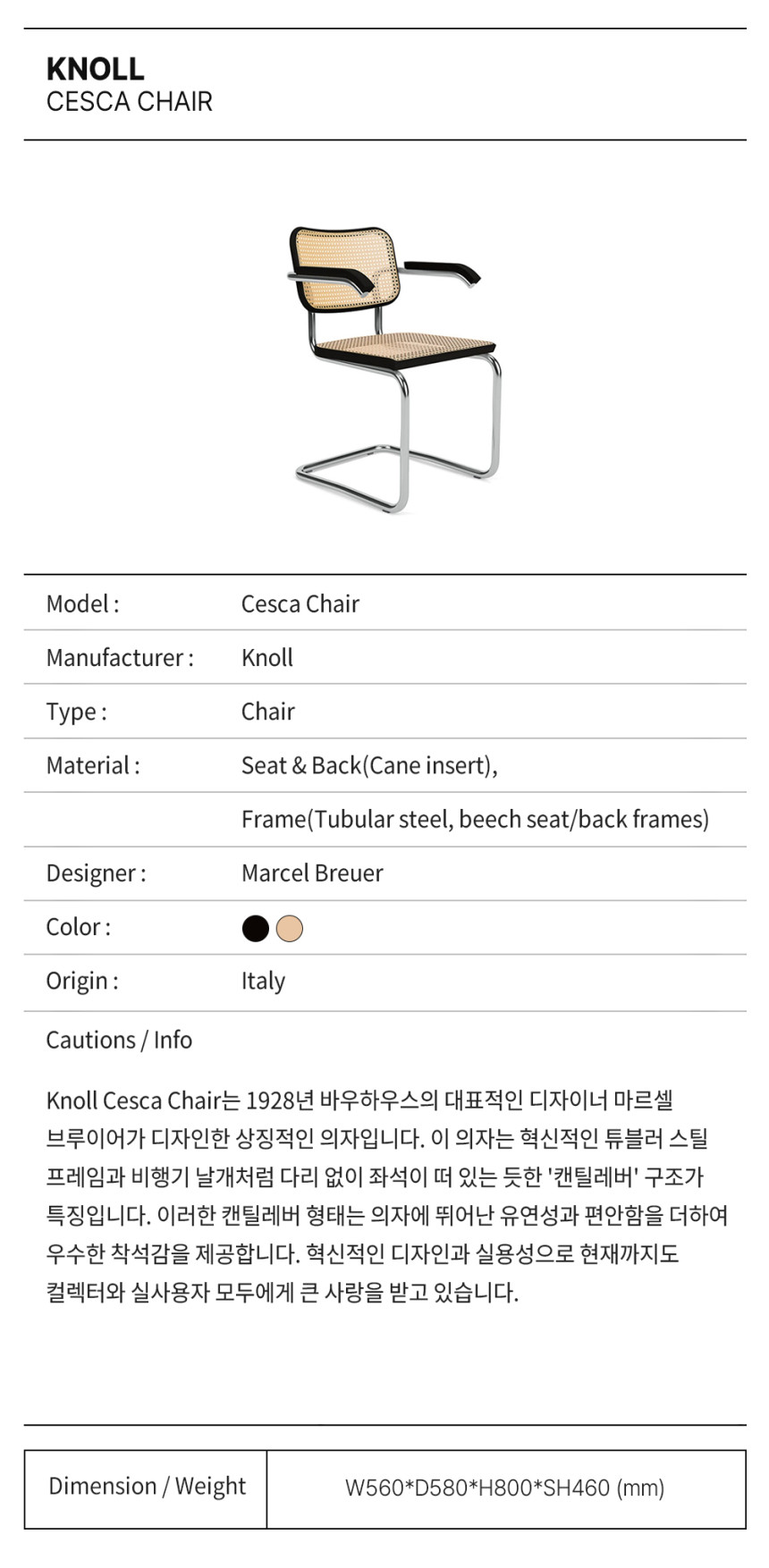 놀 세스카 체어 / Knoll Cesca Chair