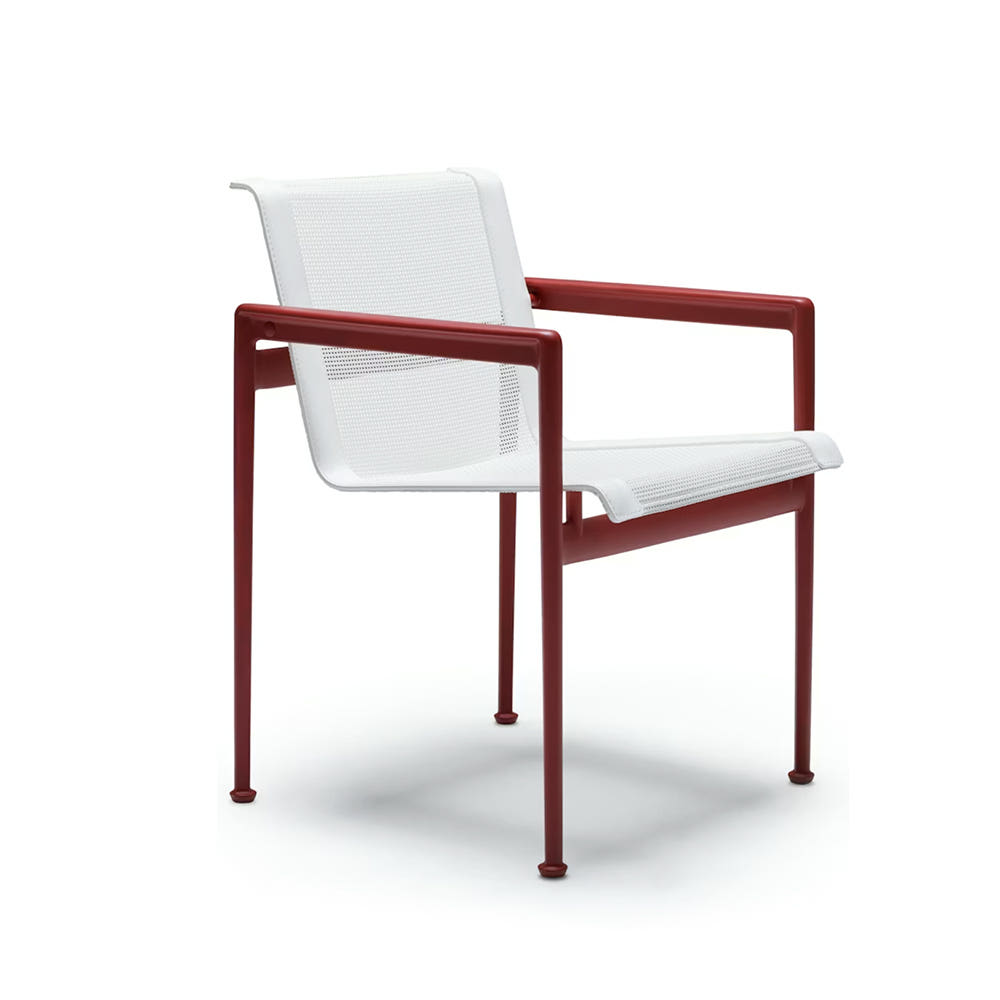 리처드 슐츠(Richard Schultz)가 플로렌스 놀(Florence Knoll)의 요청으로 1966년에 디자인한 1966 다이닝 암체어는 플로렌스 놀이 해변 주택의 부식성 환경에서도 견딜 수 있는 야외 가구를 원하면서 탄생하였습니다. 이 컬렉션은 최초의 현대적인 야외 가구로 평가받으며, 야외 가구 디자인의 새로운 기준을 제시하였습니다. 간결하고 견고한 디자인 덕분에 반세기 이상 꾸준히 사랑받고 있으며, 알루미늄 프레임으로 제작되어 뛰어난 내구성을 자랑합니다.