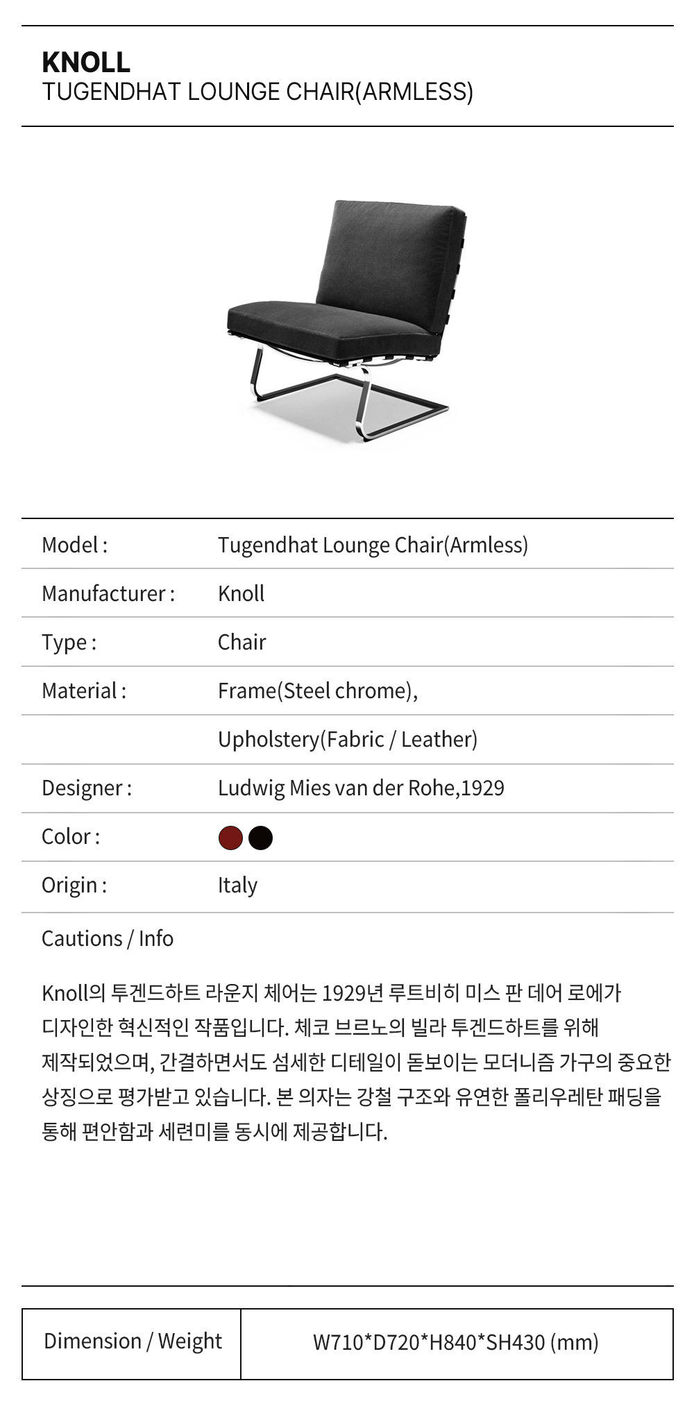 놀 투겐타트 체어 / Knoll Tugendhat Lounge Chair(Armless)