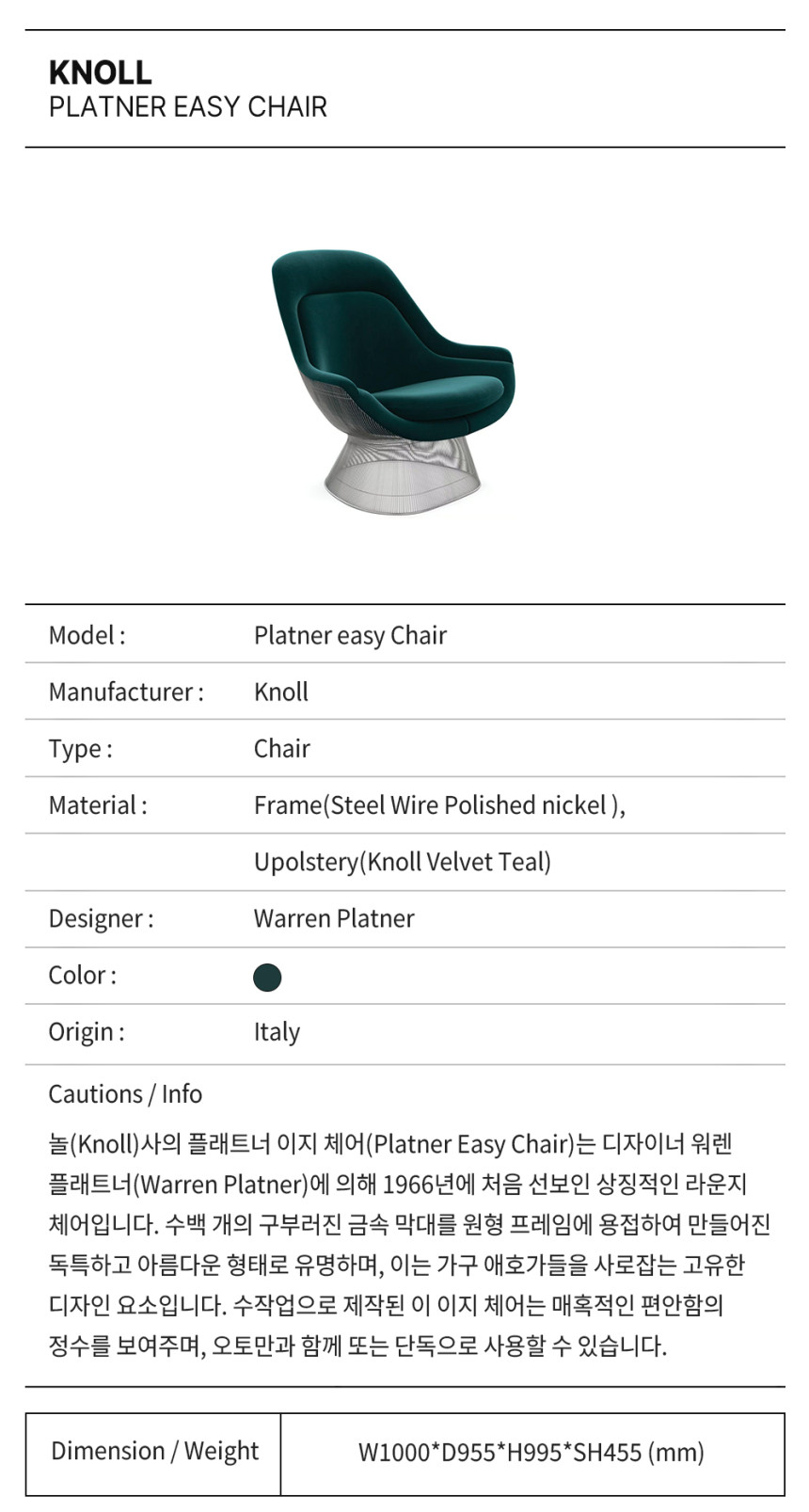 디자이너: Warren Platner (1966년 디자인)