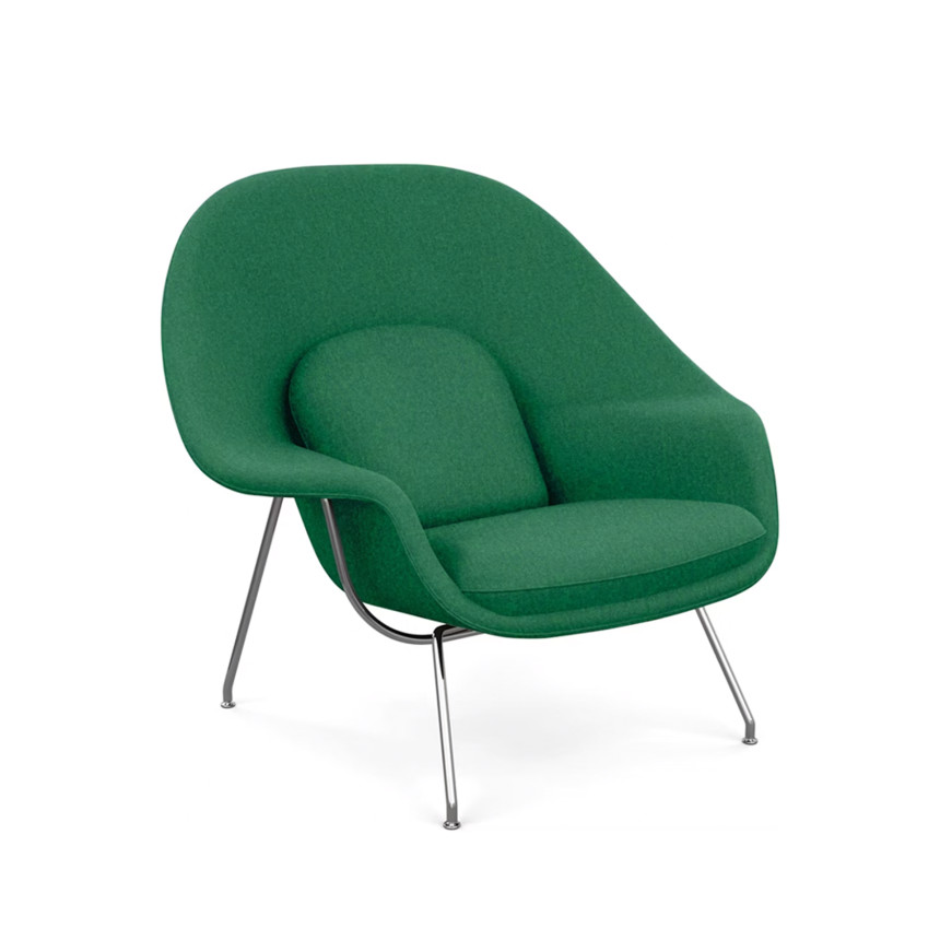 Knoll의 Womb Chair는 핀란드 출신 디자이너 에로 사리넨이 1948년 Knoll을 위해 독점적으로 디자인한 혁신적인 작품입니다. 이 의자는 기존의 규칙을 깨고 새로운 형태를 제시하는 디자이너의 재능을 잘 보여줍니다. 인체공학적으로 설계된 쉘 구조와 깊고 유연한 착석감은 현대적인 미감과 기능을 모두 충족시키며, 사용자로 하여금 편안하고 아늑한 느낌을 받을 수 있도록 고안되었습니다. 광택이 나는 크롬 베이스와 폼 코어가 있는 폴리에스테르 섬유로 구성된 시트 및 등받이 쿠션은 다양한 고품질 직물로 마감되어 있습니다.
