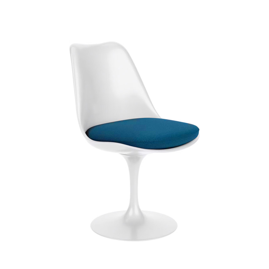 Saarinen Tulip Chair는 핀란드계 미국인 디자이너 에로 사리넨(Eero Saarinen)이 미국의 Knoll 사를 위해 디자인한 작품입니다. 이 디자인은 하나의 기둥으로 지탱되는 구조를 통해 기존 가구의 복잡한 다리 구조에서 벗어나려는 디자이너의 철학이 담겨 있습니다.