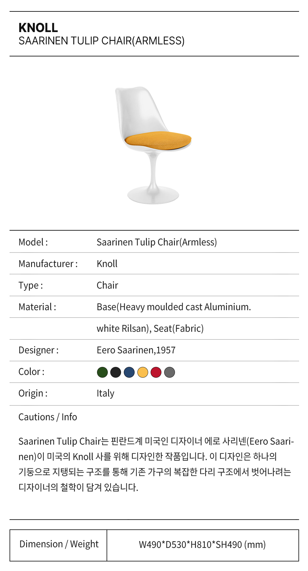 놀 사리넨 툴립 체어 / Knoll Saarinen Tulip Chair(Armless)