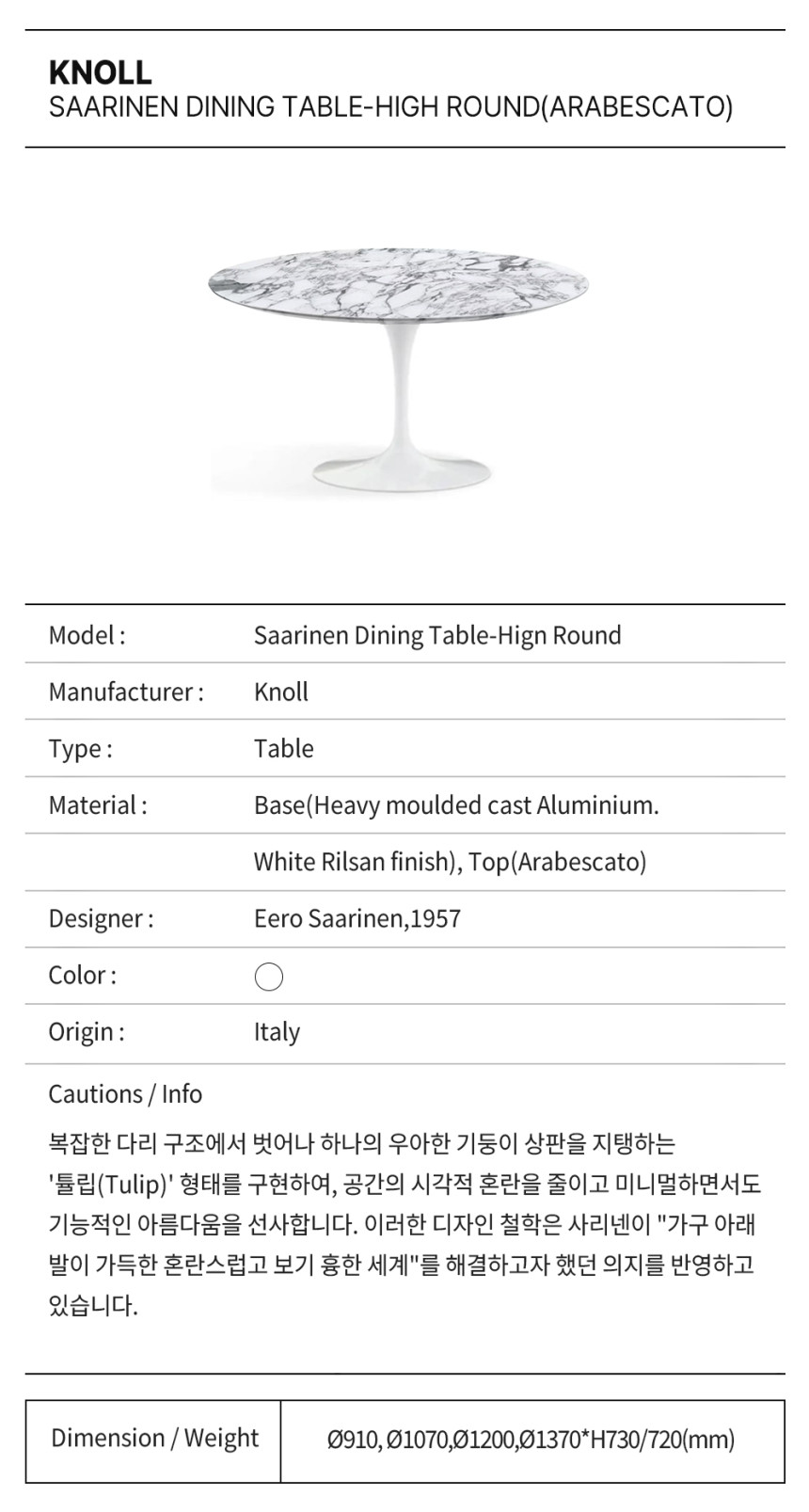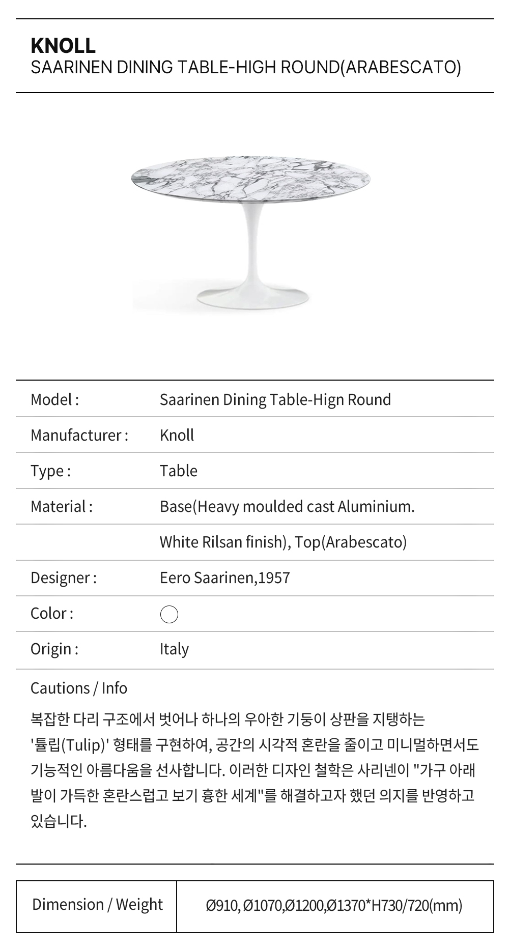 놀 사리넨 다이닝 하이 테이블_라운드 / Knoll Saarinen Dining high Table-Round(Arabescato)