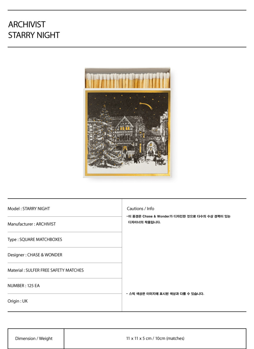 아키비스트 별이 빛나는 밤 성냥 / Archivist Starry Night Matches