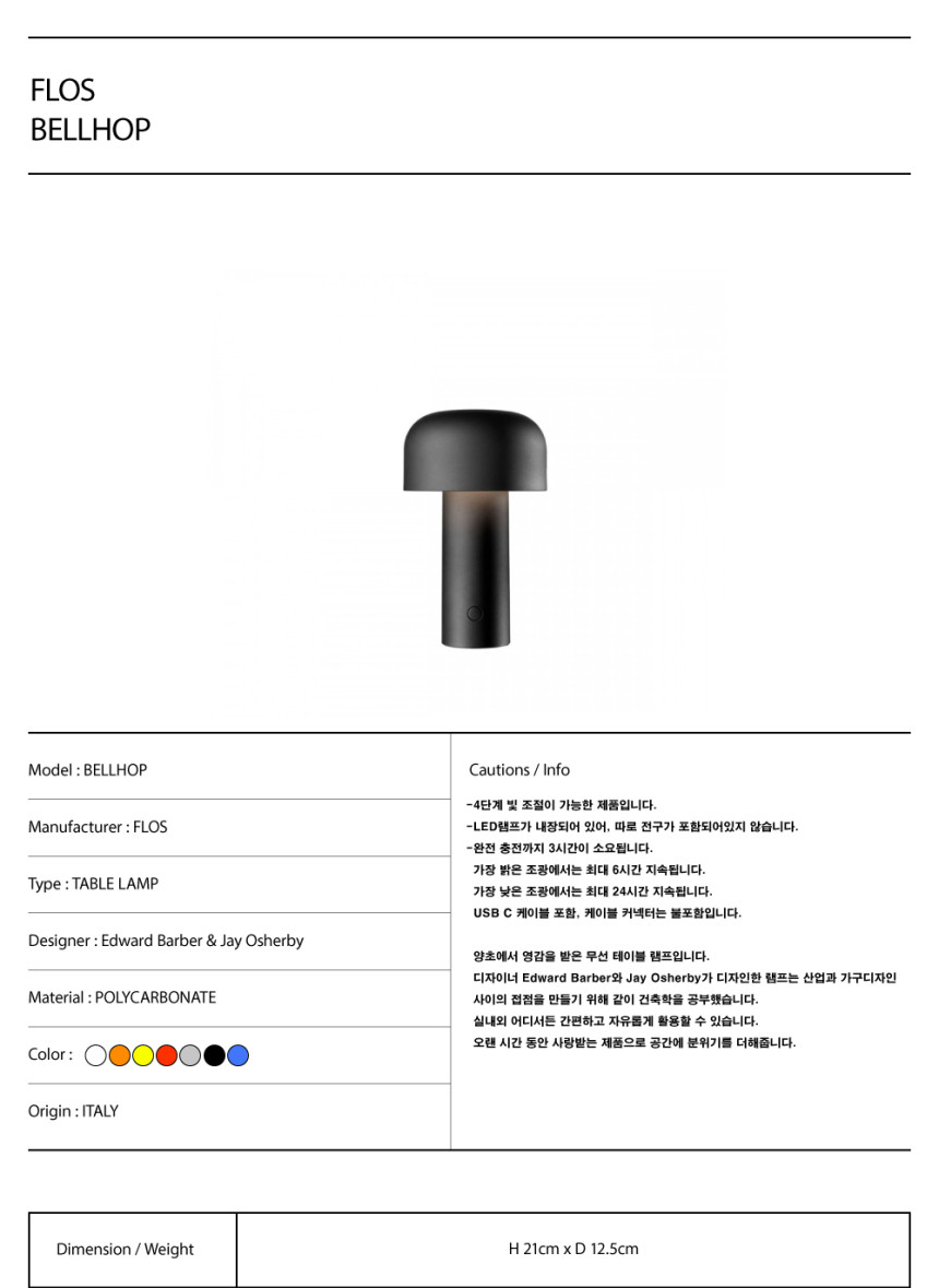 플로스 벨홉 LED 램프 / Flos Bellhop LED Lamp