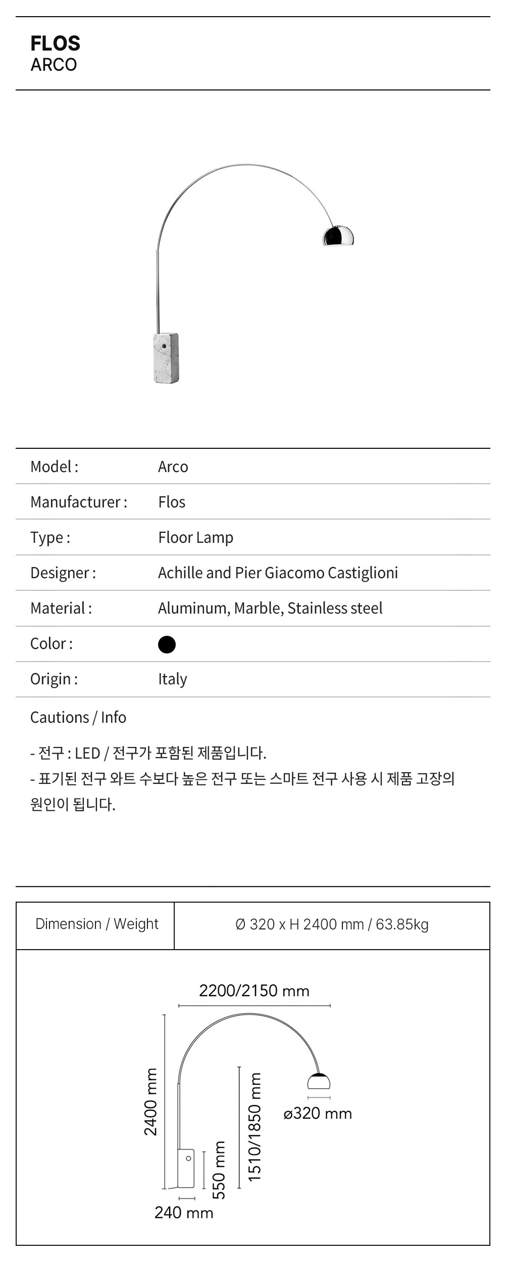 플로스 아르코 플로어 램프 / FLOS Arco Floor Lamp