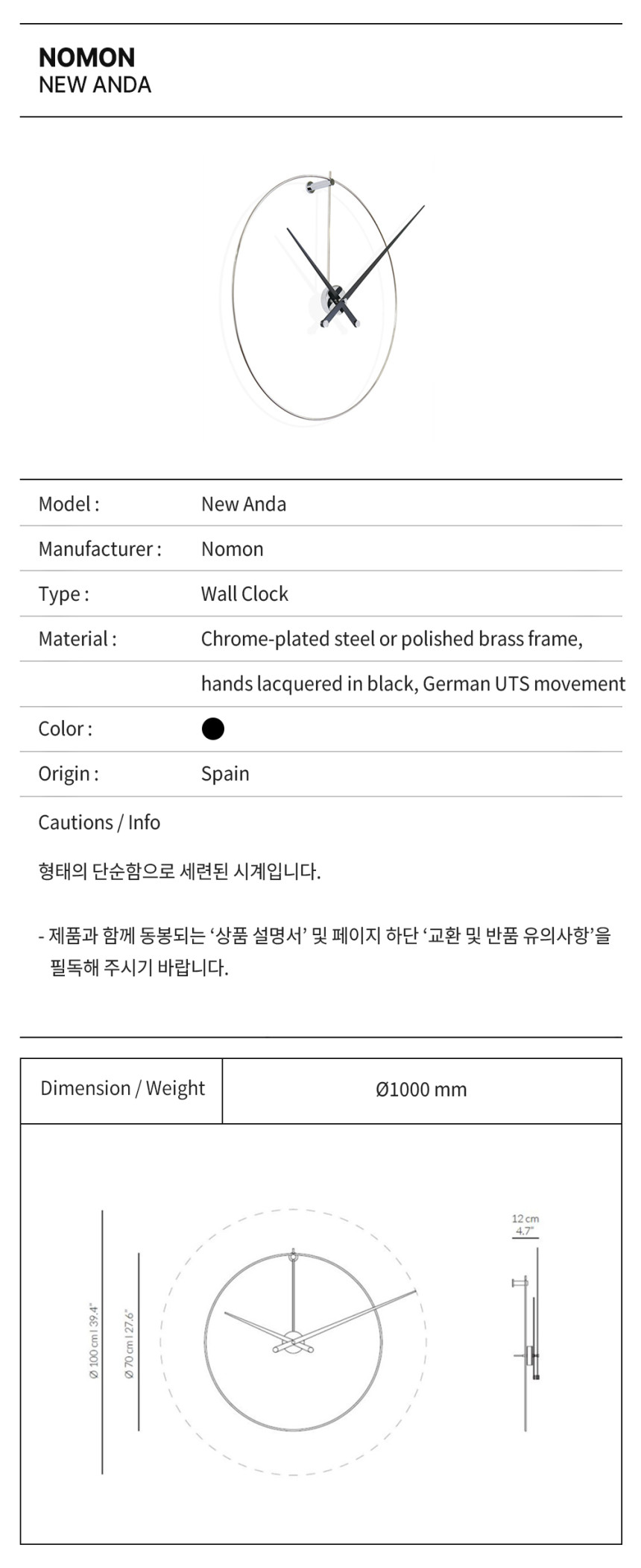 노몬은 실내 시계를 이끄는 스페인 회사입니다. 삶 속에서 아름다움을 투영한다는 철학을 가지고 시계를 단순히 시간을 알리는 것에서 끝내는 것이 아니라 공간을 고급스럽고 우아하게 꽉 채워주는 오브제로 만들고자 합니다.