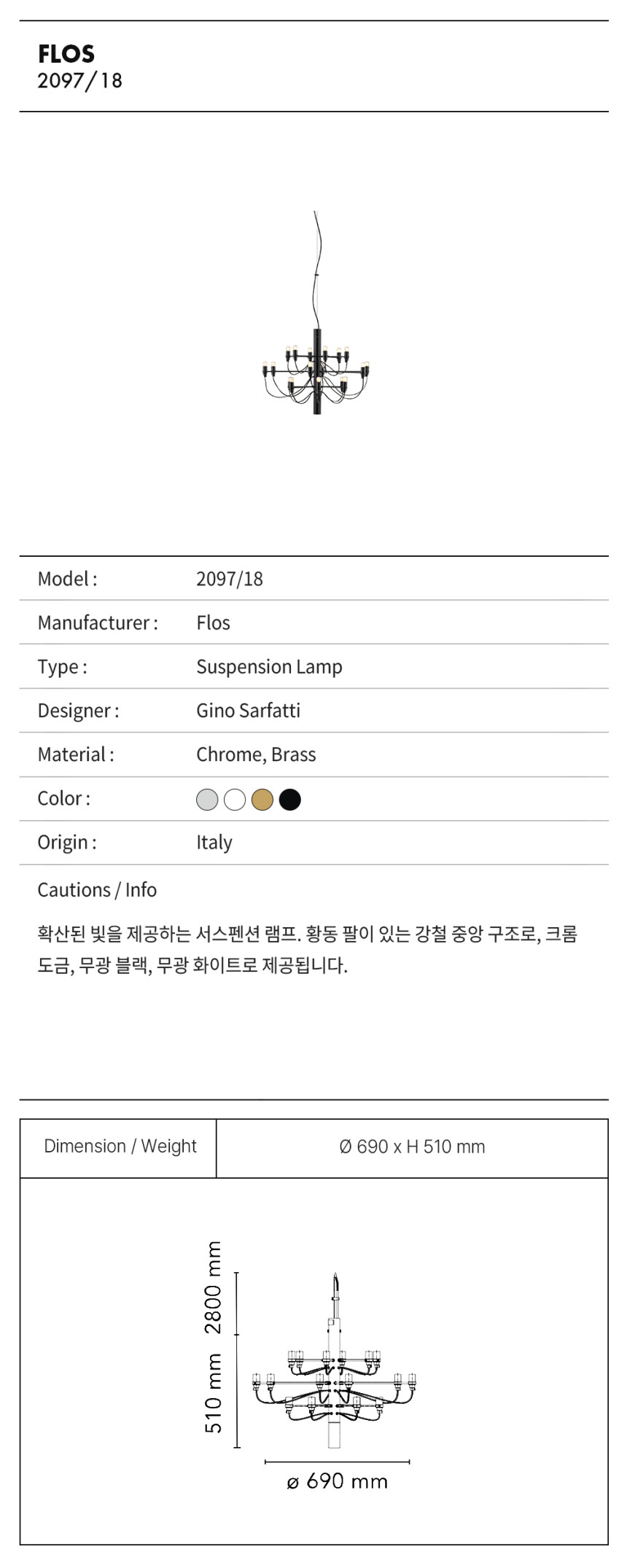 플로스 2097/18 샹들리에 펜던트 / Flos 2097/18 Chandelier Pendent
