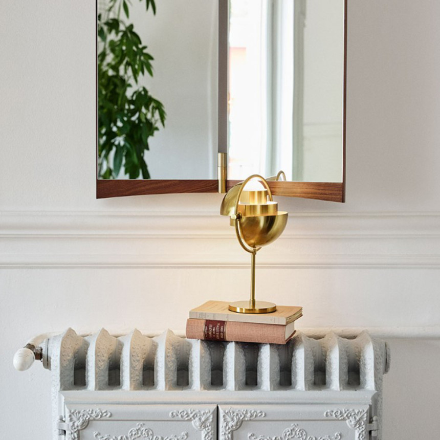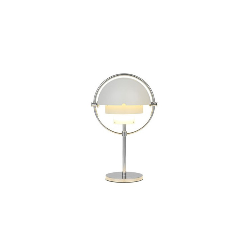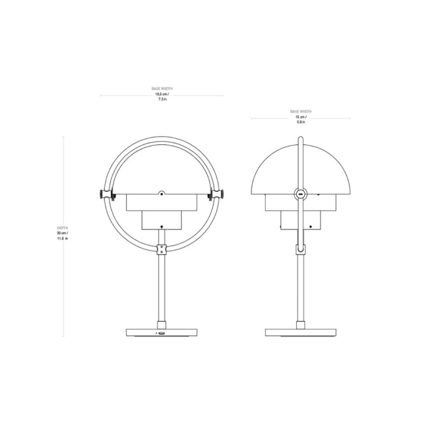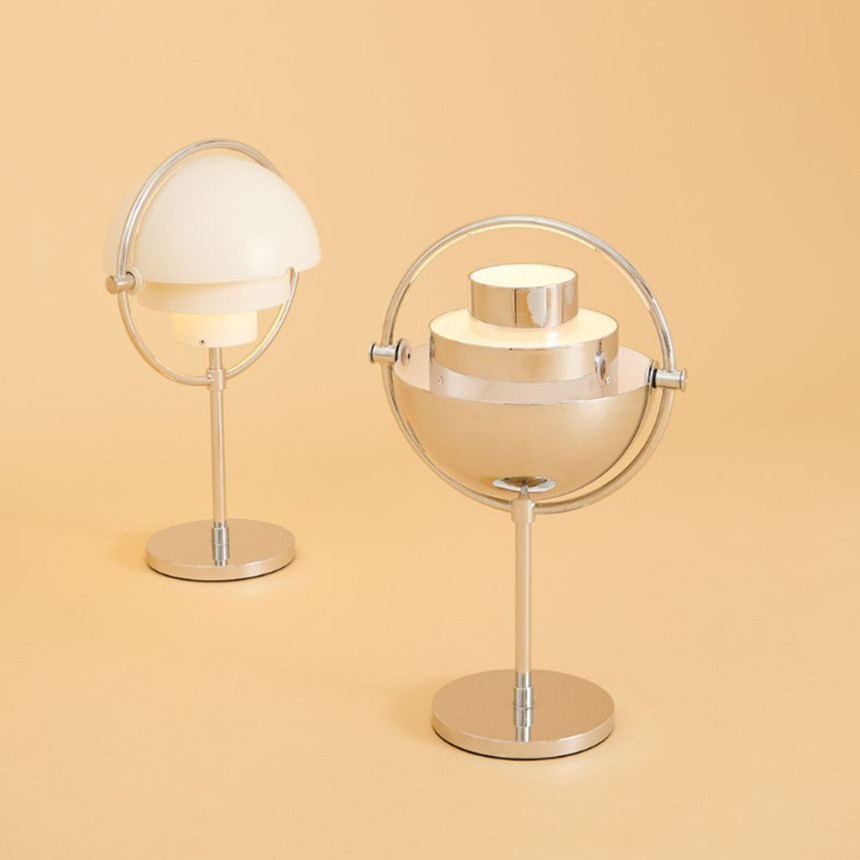 테이블 램프에서는 외부 고리의 양쪽에 있는 두 개의 작은 디스크를 사용하여 전등갓의 각도를 조정합니다.