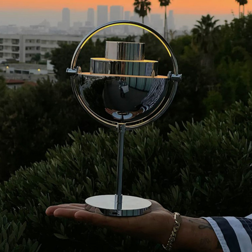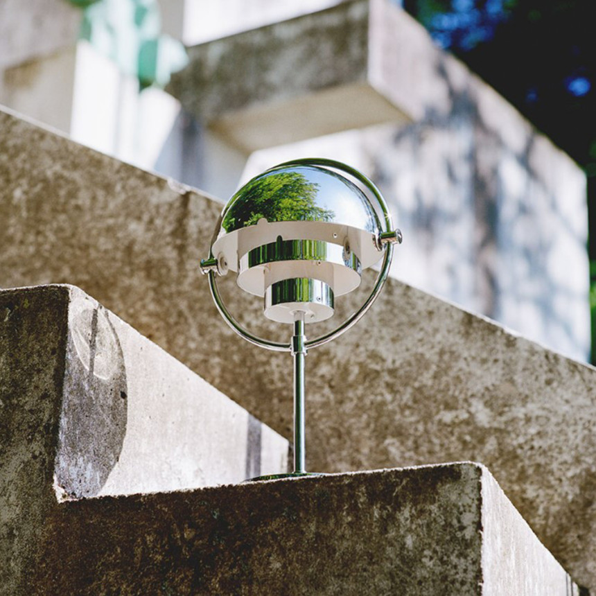 회전하는 2개의 쿼터로 구성 - 금속 링으로 둘러싸인 구 모양의 전등갓은 은은한 조명부터 선명하고 집중된 조명까지 상황에 따라 필요한
