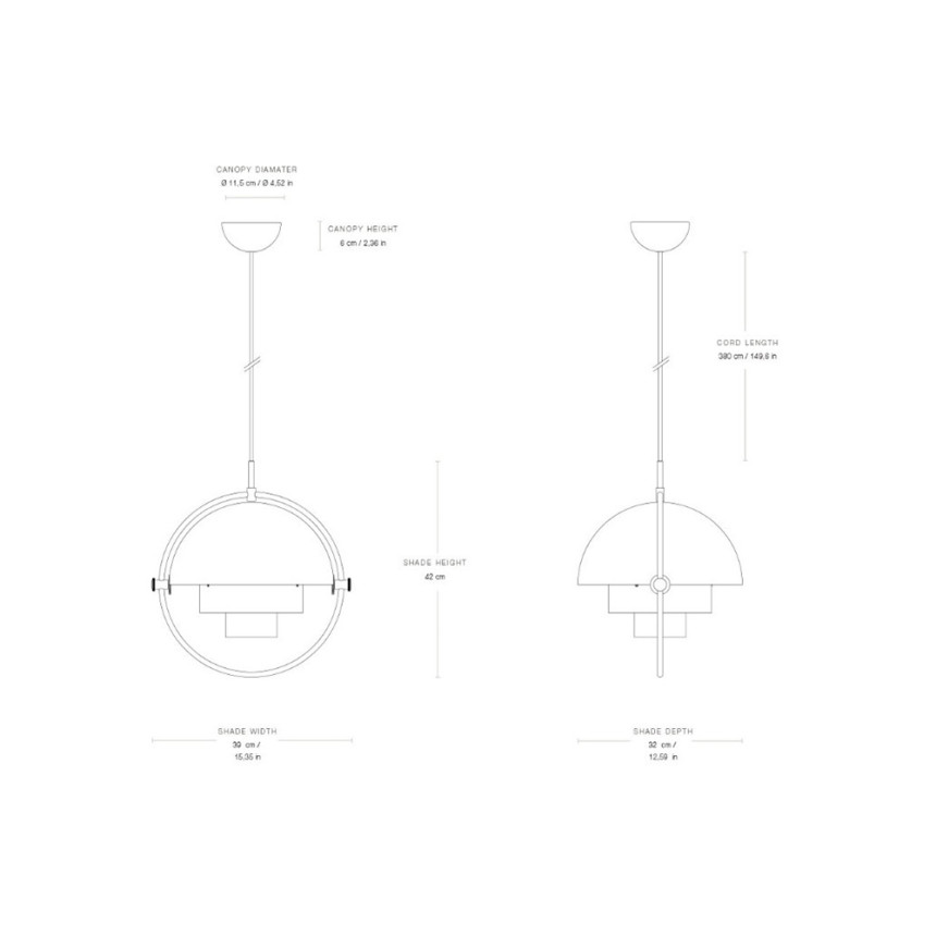 회전하는 2개의 쿼터로 구성 - 금속 링으로 둘러싸인 구 모양의 전등갓은 은은한 조명부터 선명하고 집중된 조명까지 상황에 따라 필요한