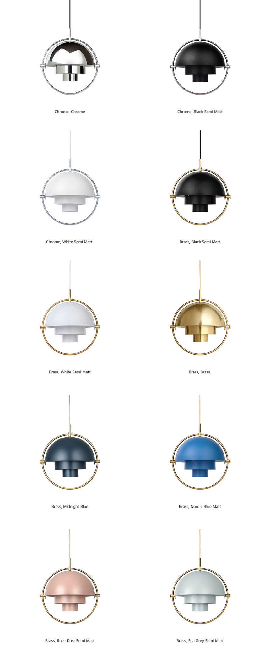 금속 링, 두 개의 동심원통, 한 쌍의 회전하는 1/4구 전등 갓이 멀티 라이트의 재미있고 맞춤 설정 가능한 램프를 구성합니다.