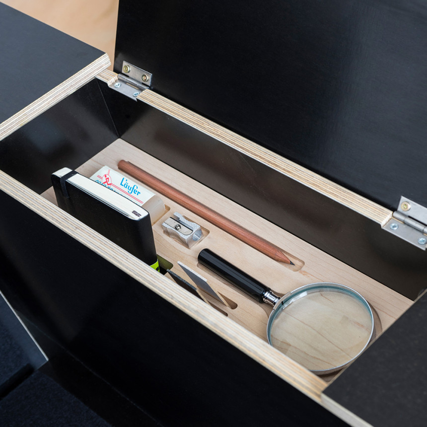 Armrest compartment inside: untreated maple