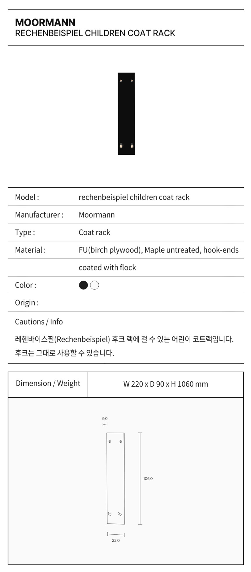 무어만 칠드런 코트 랙 / Moormann rechenbeispiel children coat rack (for Rechenbeispiel Hook Rail)