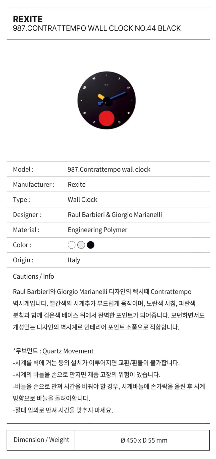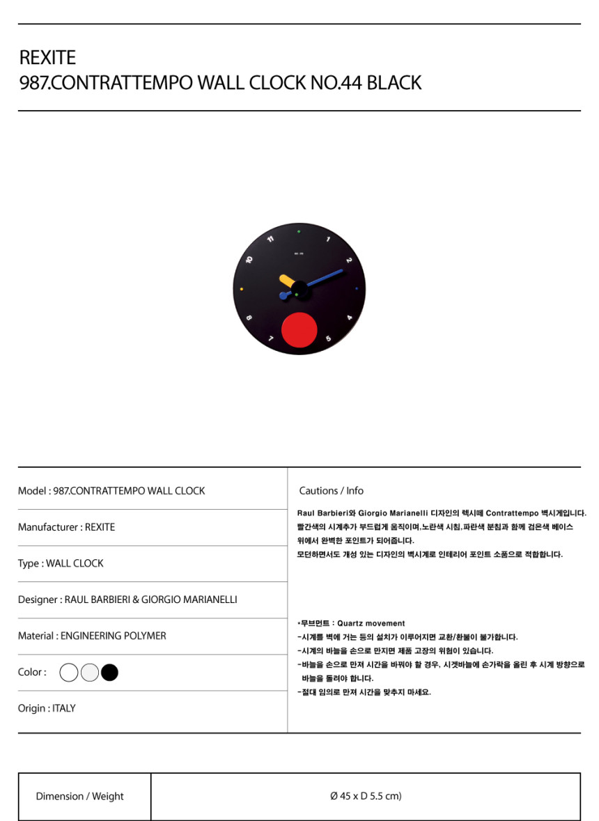렉시떼 벽시계 콘트라템포 NO.44 Black / 987 Contrattempo Pendulum