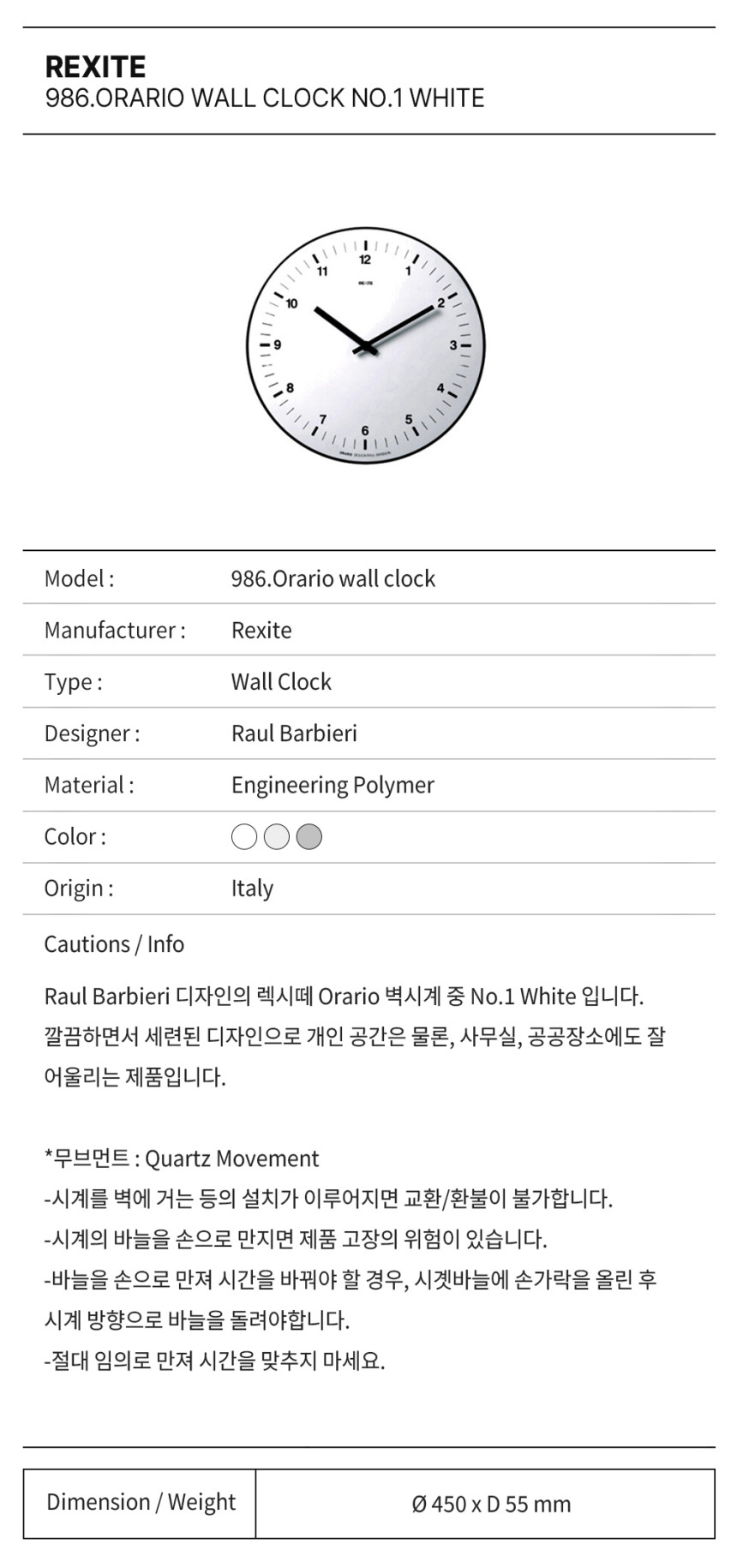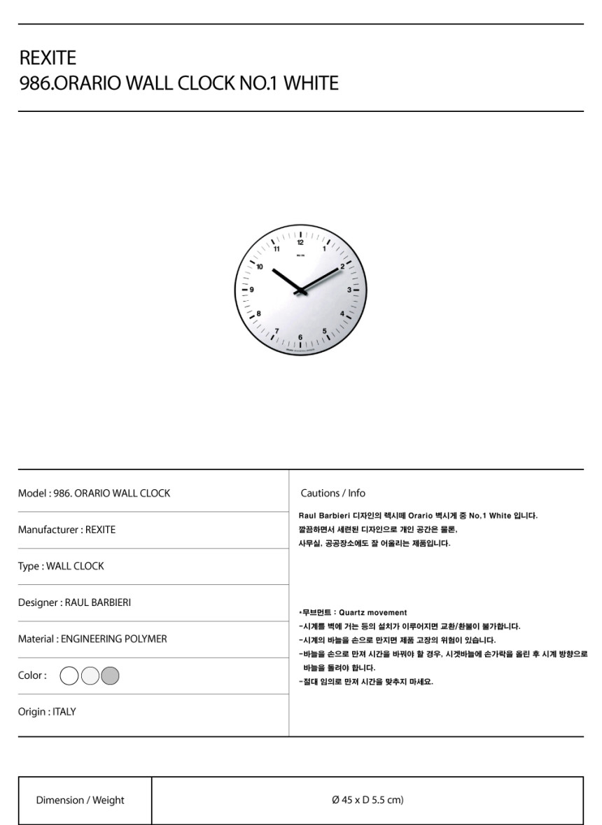 렉시떼 벽시계 오라리오 화이트 / 986.Orario Wall Clock No.1 White
