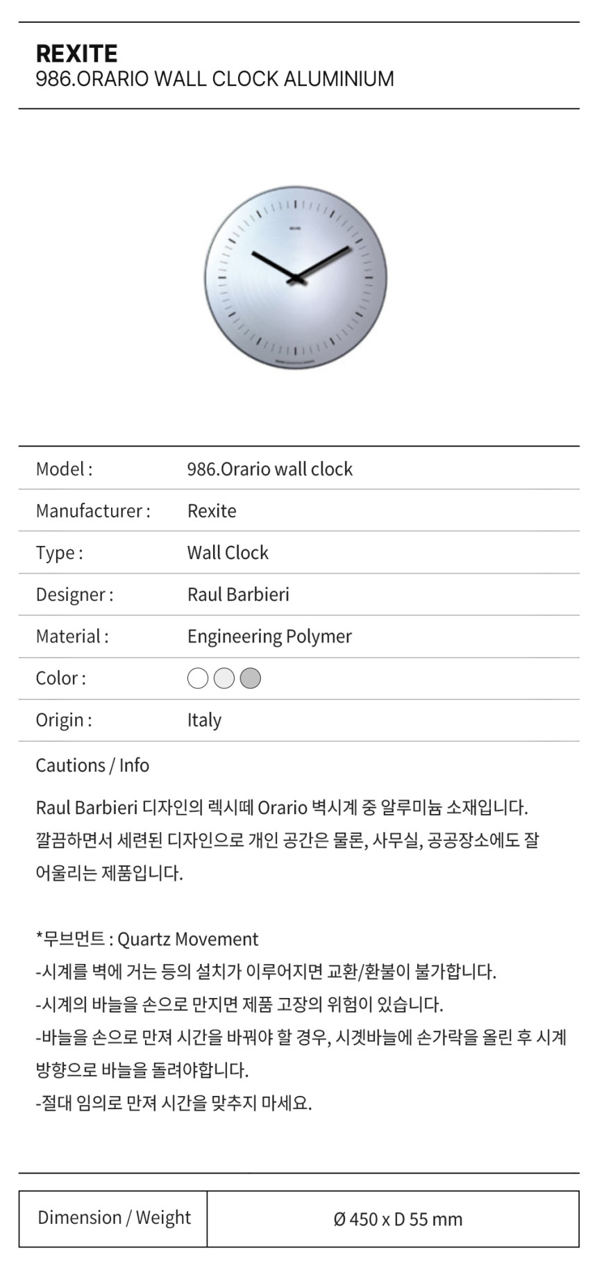 렉시떼 벽시계 오라리오 알루미늄 / 986.Orario Wall Clock Aluminium