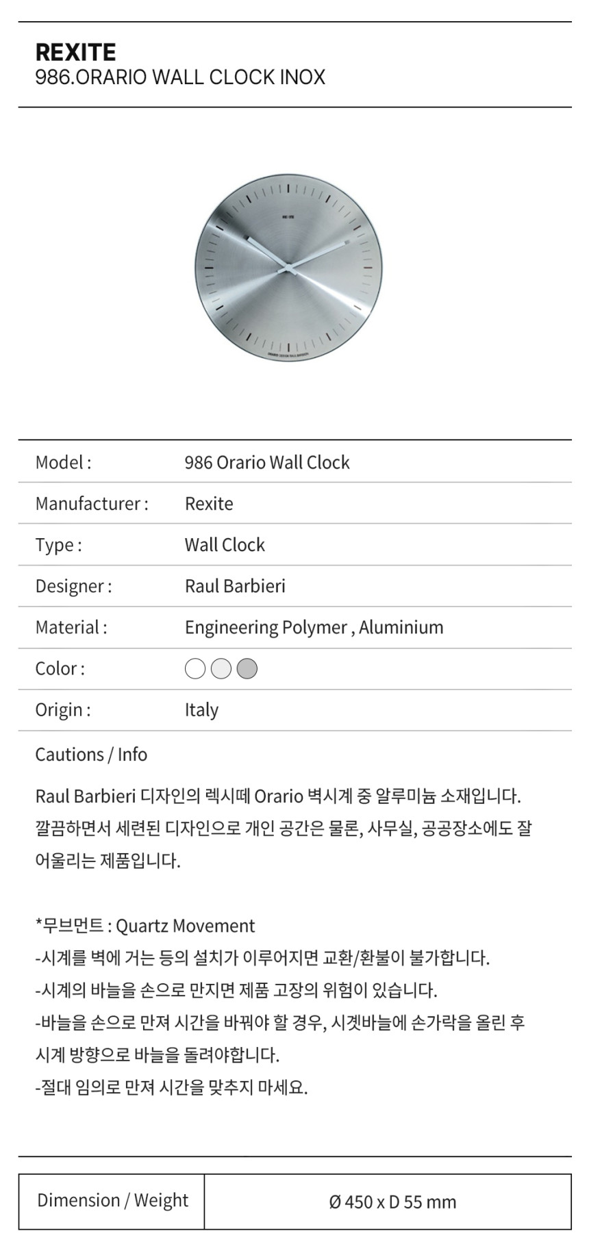 렉시떼 벽시계 오라리오 이녹스 / 986.Orario Wall Clock Inox
