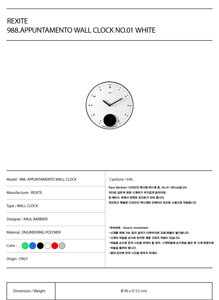 렉시떼 벽시계 아푼타멘토 화이트 / 988.Appuntamento Wall Clock No.01 White