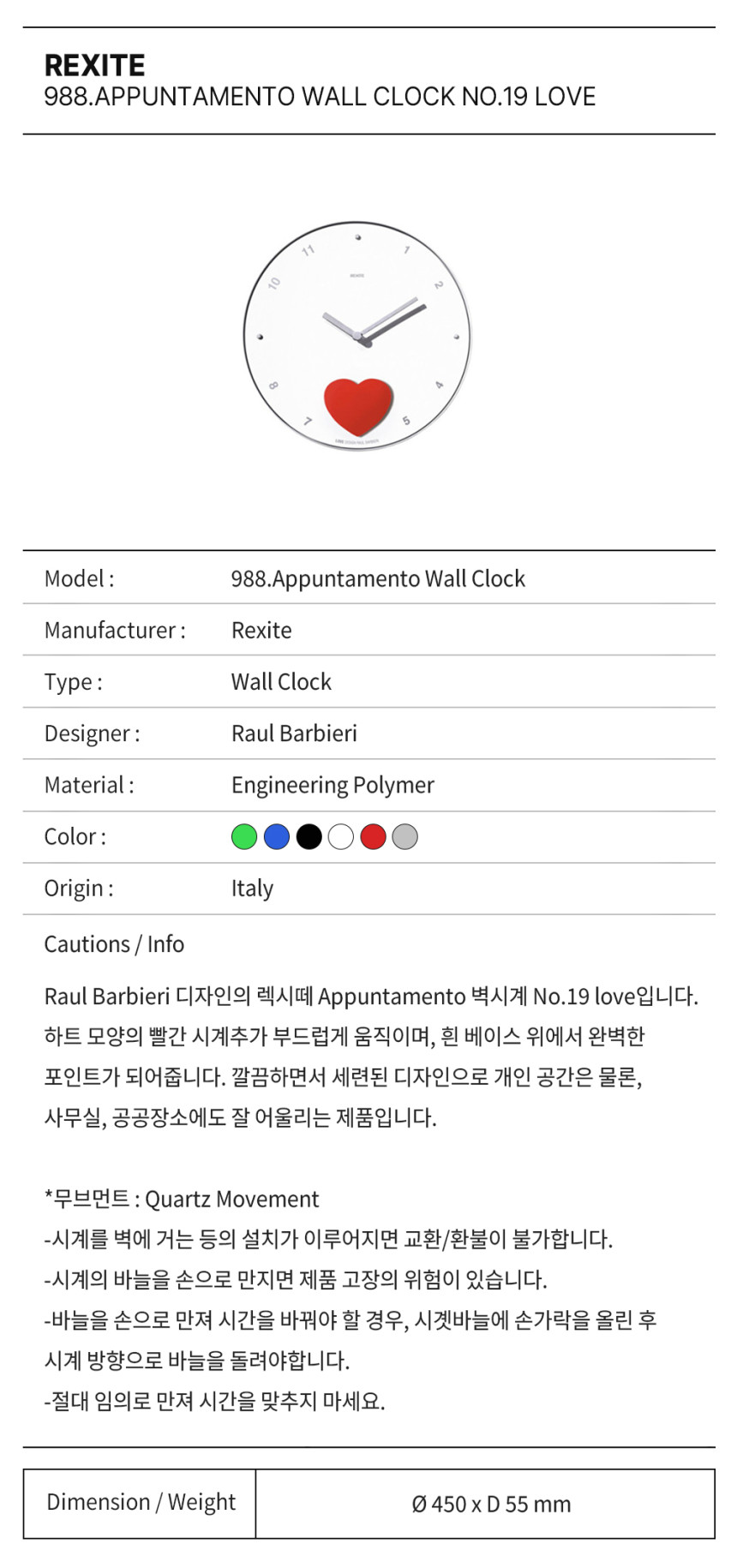 렉시떼 벽시계 아푼타멘토 러브 / 988.Appuntamento Wall Clock No.19 Love