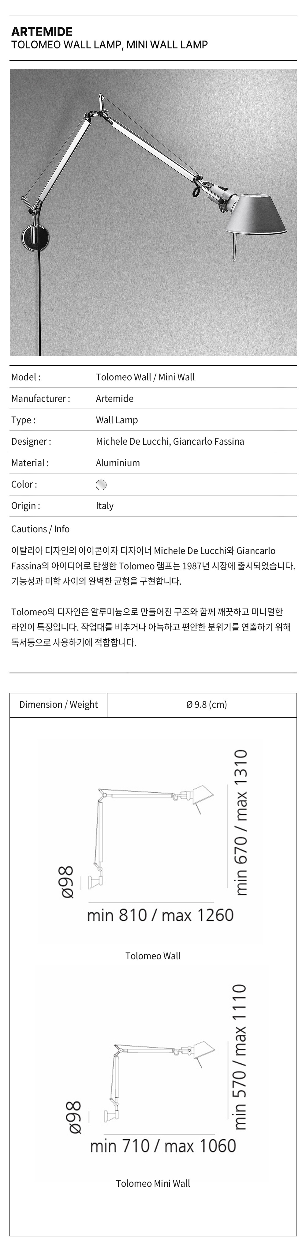 아르떼미데 톨로메오 파레테 벽조명 / Artemide Tolomeo Wall Lamp