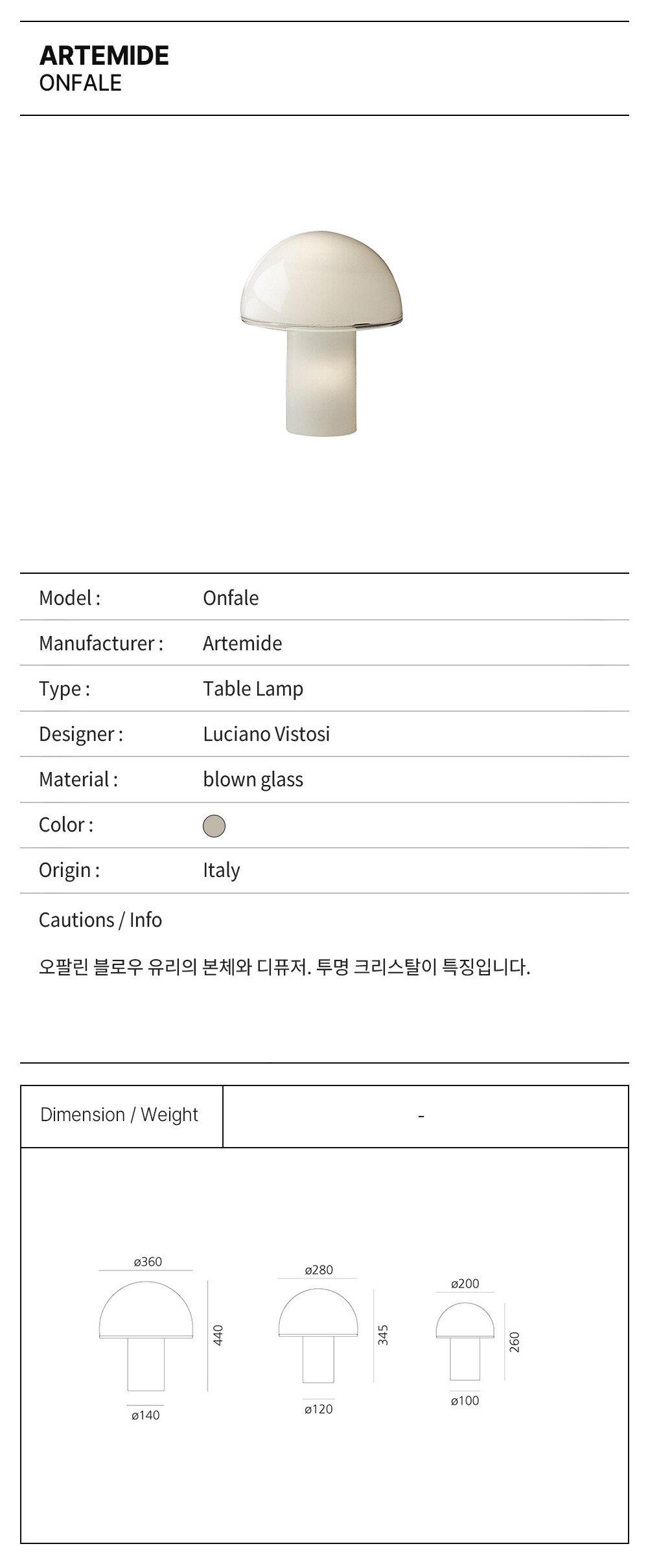 * 아르떼미데 국내 공식 판매사로 정식 통관된 정품만 판매합니다.