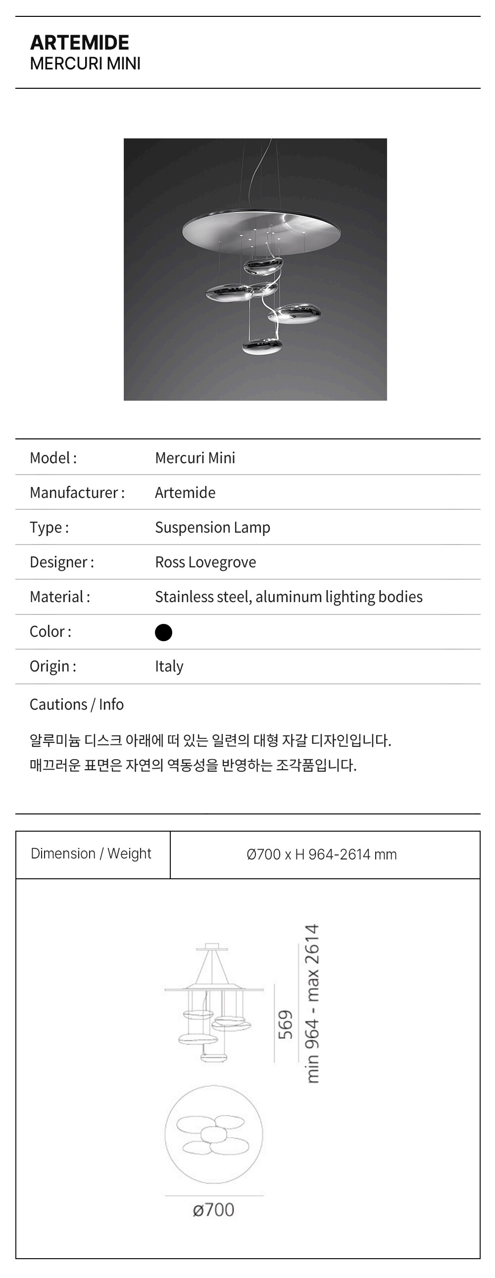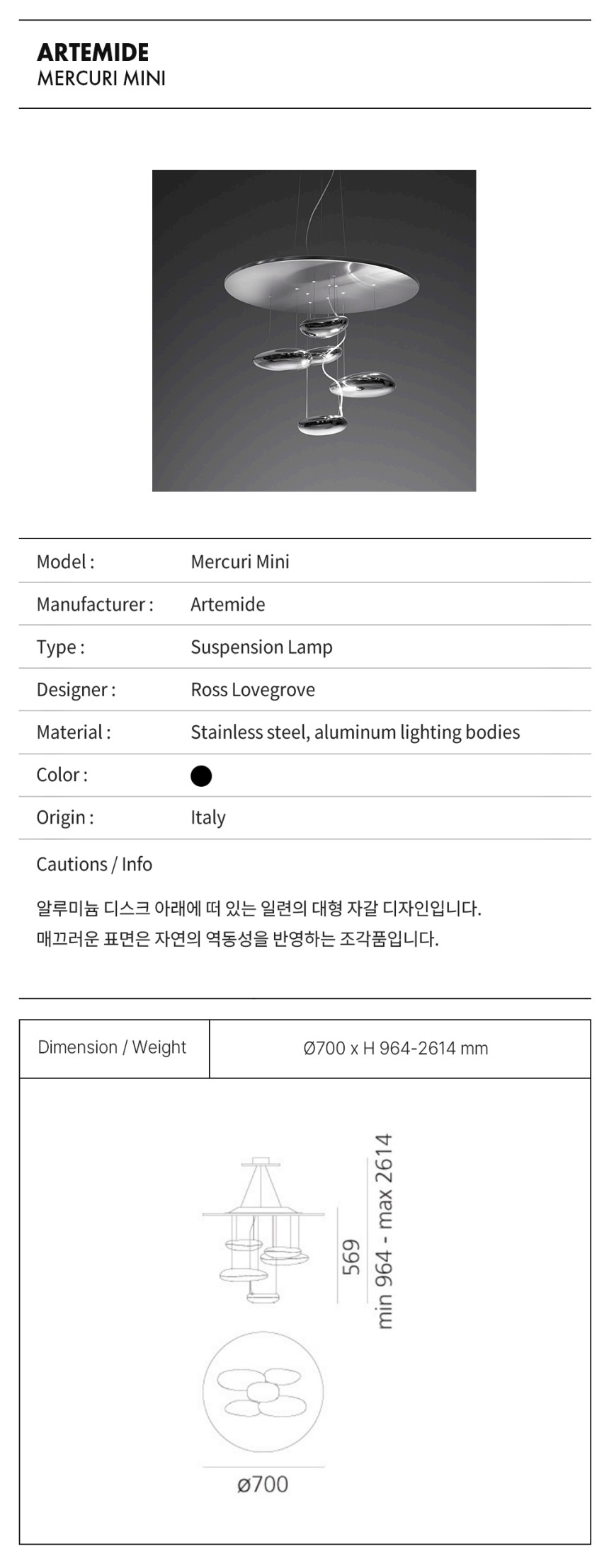 아르떼미데 머큐리 미니 팬던트 (LED 내장형) / Artemide Mercuri Mini Pandent (LED)
