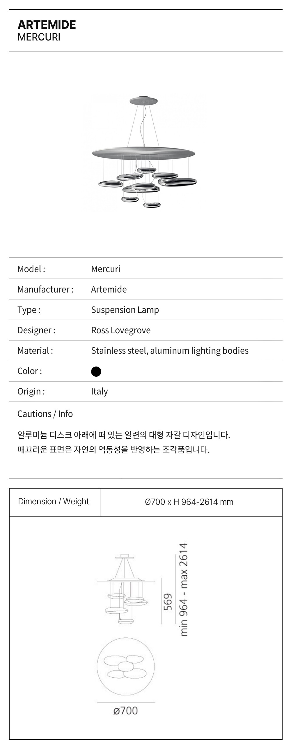 아르떼미데 머큐리 팬던트 (LED 내장형) / Artemide Mercuri Pandent (LED)