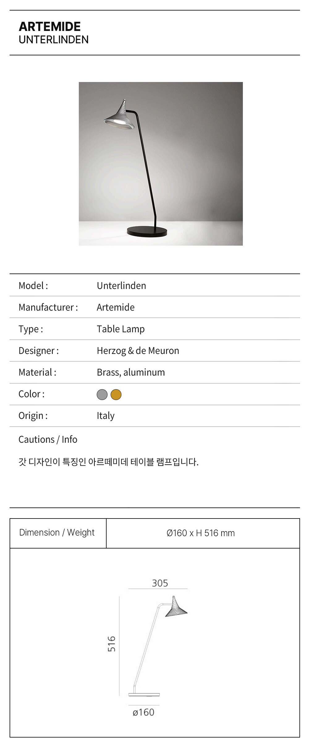 아르떼미데 운터린덴 테이블 램프 / ARTEMIDE UNTERLINDEN TABLE LAMP (2COLOR)