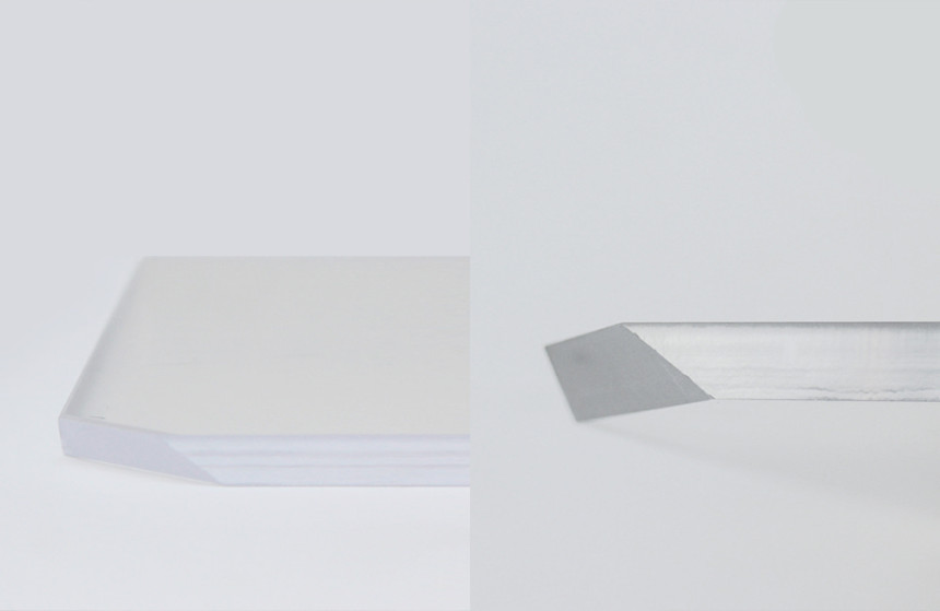 아크릴 선반의 모서리는 30도 각도로 커팅 되어있어 선발을 트롤리에서 쉽게 빼거나 끼워 넣을 수 있습니다.