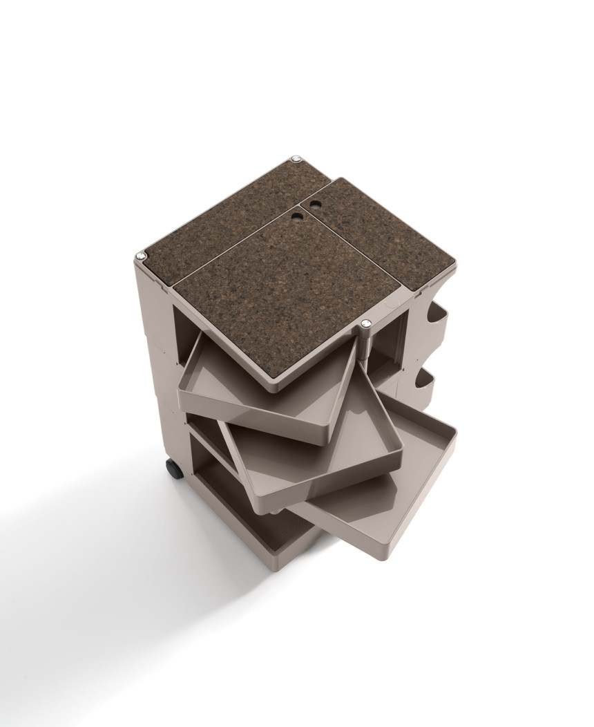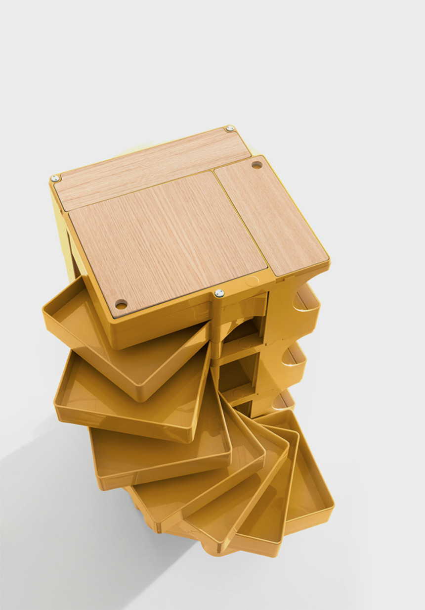시대를 초월한 디자인, Joe Colombo의 Boby Trolley 제품과 함께 사용하는 상판입니다.