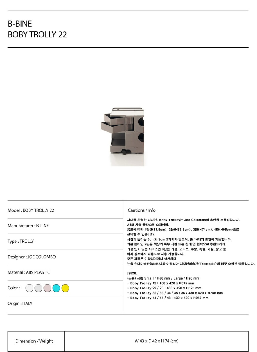 대표적인 제품인 Boby Trolley는 이탈리아의