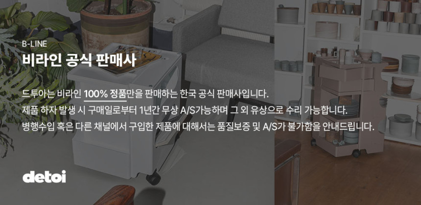 B-Line은 오래 사용할 수 있고 지속 가능한 제품을 만들기 위해 노력하는 이탈리아의 디자인 브랜드입니다. 대표적인 제품인 Boby Trolley는 이탈리아의 거장 디자이너인 Joe Colombo의 "시대를 초월하는 작품"으로 유명합니다. Boby는 단순한 용기 그 이상입니다. 디자인 역사를 쓴 트롤리 수납 유닛입니다. 기능성과 디테일은 Boby의 강점이며, 여기에 톡톡 튀는 개성이 더해져 크리에이티브 분야는 물론 의료, 가정 등 다양한 분야에서 가장 인기 있는 수납 트롤리로 자리매김했습니다. 사출 성형 ABS 플라스틱 서랍과 수납공간으로 설계된 Boby는 간편한 수직 모듈형 솔루션을 제공하고, 다재다능한 맞춤형 수납 공간을 제공하며, 폴리프로필렌 캐스터는 완벽한 이동성을 보장합니다.