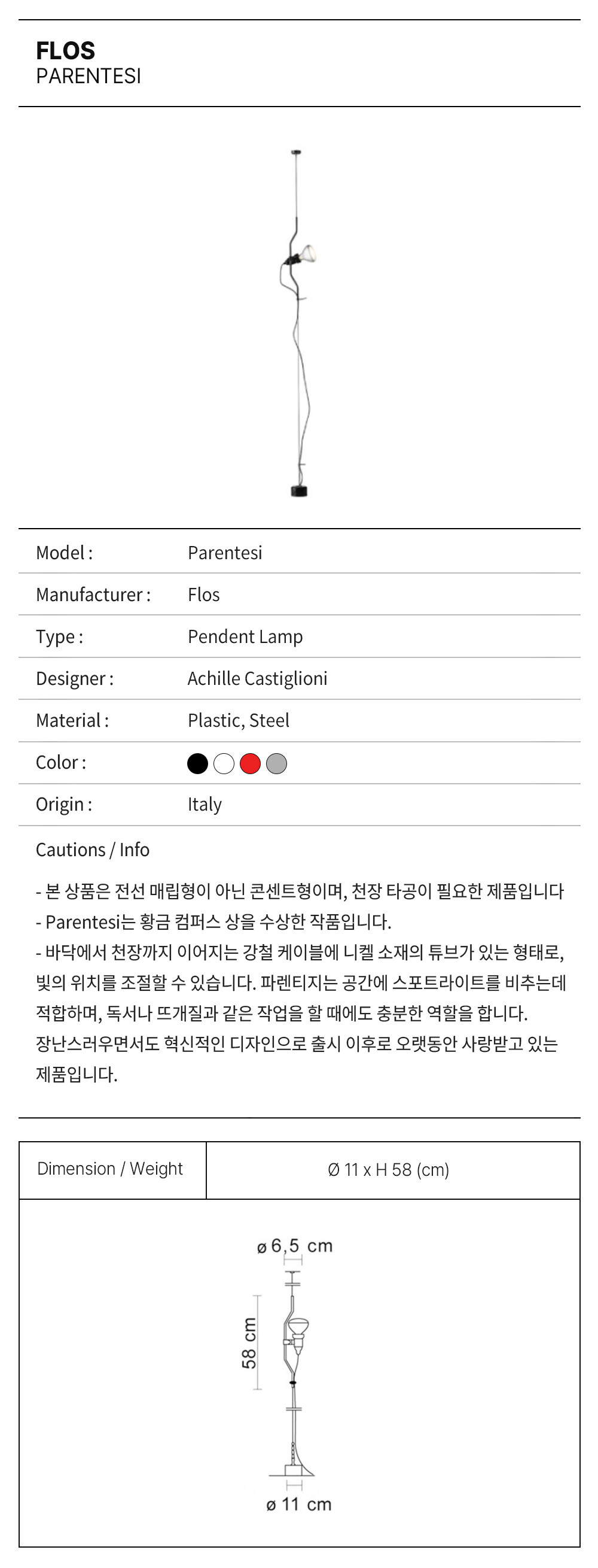플로스 파렌티지 조명 (디머포함) / Flos Parentesi Lamp with dimmer