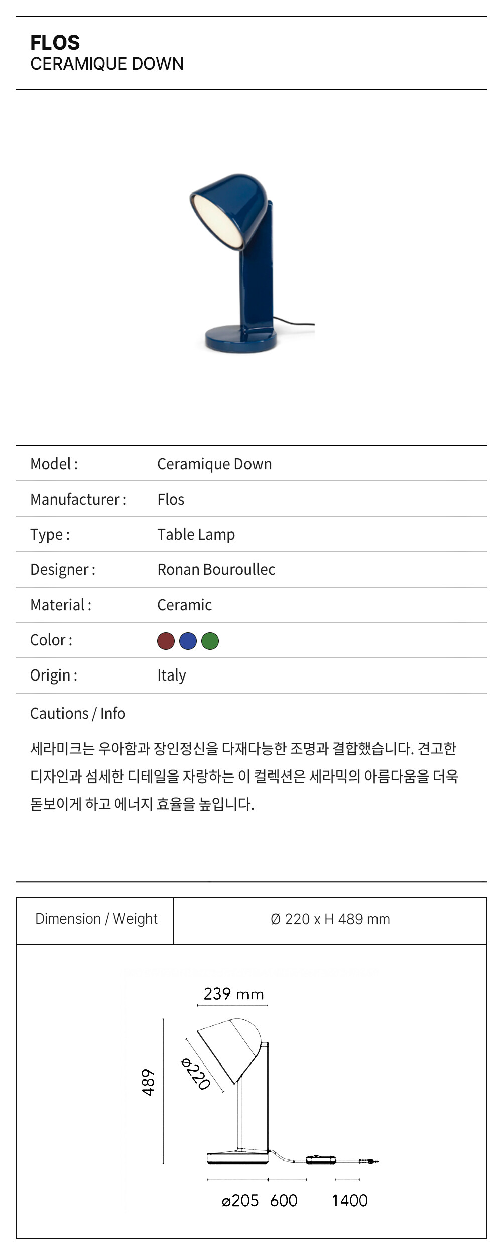 플로스 세라믹 다운 테이블 조명/ Flos ceramique down table lamp