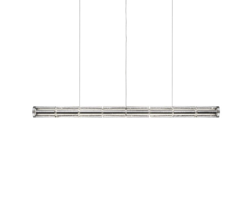 상호 연결된 유리 모듈로 구성된 매달린 램프는 길이가 1.66m(S1), 2.07m(S2), 2.49m(S3)이며 2.70m의 매달린 전원 케이블이 있습니다.원통형 투명 유리 모듈은 회전하는 금형에 유리를 부어 각각의 조각이 고유한 마감을 얻는 장인적 공정을 통해 제작됩니다.광택 압출 알루미늄으로 된 내부 구조에는 직접 및 간접 조명을 위한 두 개의 선형 LED 모듈이 장착되어 있습니다.모듈은 유지 관리 시 쉽게 분리 및 교체할 수 있습니다.전원 공급 장치와 Dali Dimmer는 천장 장미 안에 있으며 제품 한쪽 끝에 있는 터치 제어 버튼을 사용하여 조명기구를 세 가지 모드로 제어할 수 있습니다.사용 가능한 제어 옵션: TOUCH_ 램프의 터치 버튼을 통한 직접 제어 기능. 이 옵션을 사용하면 위쪽과 아래쪽 방출(개별적으로 또는 결합하여)의 조도를 10%에서 100%까지 어둡게 하거나 조절할 수 있습니다.PUSH&TOUCH_ 푸시 버튼을 통해 원격으로 켜기/끄기를 제어할 수 있으며, 램프에 통합된 터치 버튼을 통해 위쪽과 아래쪽 방출(개별적으로 또는 결합하여)의 조도를 10%에서 100%까지 어둡게 하거나 조절할 수 있습니다.DALI&TOUCH_ DALI DT6를 통해 원격으로 켜기/끄기를 제어할 수 있으며, 램프에 통합된 터치 버튼을 통해 위쪽과 아래쪽 방출(개별적으로 또는 결합하여)의 조도를 10%에서 100%까지 어둡게 하거나 조절할 수 있습니다.