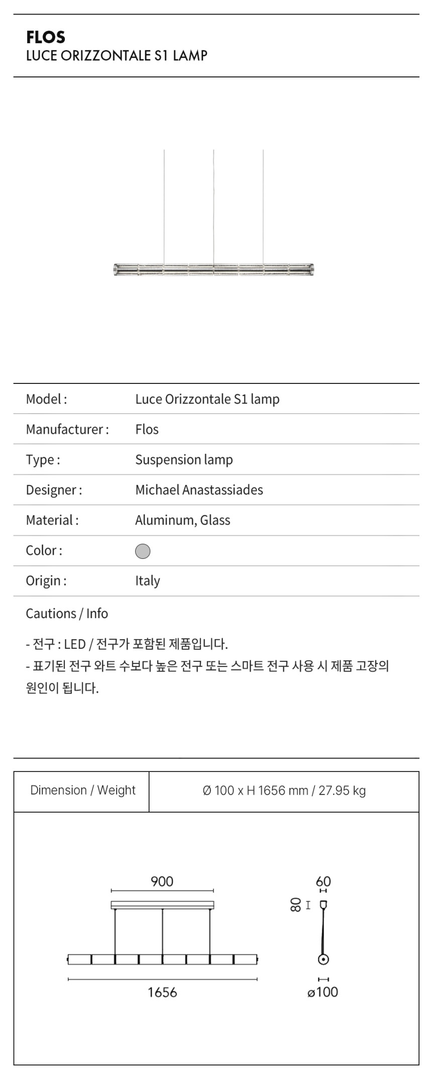 플로스 루체 오리존탈 서스펜션 펜던트 램프 / Flos Luce Orizzontale S1 lamp