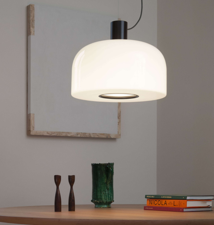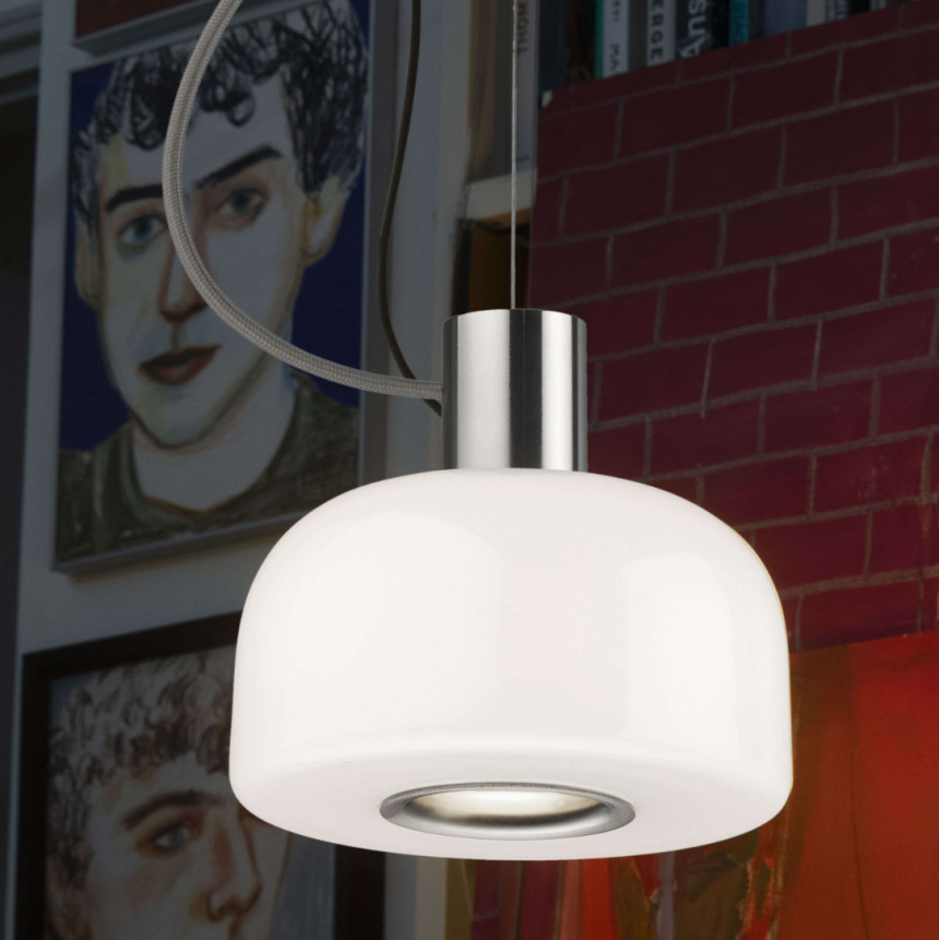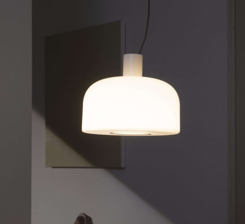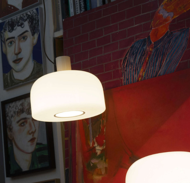 벨홉 글래스 서스펜션은 주변 조명뿐만 아니라 작업 조명으로도 사용할 수 있습니다. 눈부심 방지 원뿔 형태로 매달린 표면에 직접 빛을 비추는 조명입니다. 램프 하단의 구멍은 알루미늄으로 보호되어 있으며, 빛을 직접 전달하고 전구를 교체할 수 있도록 설계되어 테이블에 앉은 사람의 눈으로 빛이 확산되는 것을 방지합니다. 따라서 매달린 벨홉 글래스 내부에 원뿔 형태의 빛이 형성되어 주변 환경의 모든 면에서 균일하게 퍼져나가 마치 손전등처럼 테이블에 정확하게 닿습니다. 램프 하단 구멍을 둘러싼 컬러 알루미늄 링이 시각적으로 이를 보여줍니다.