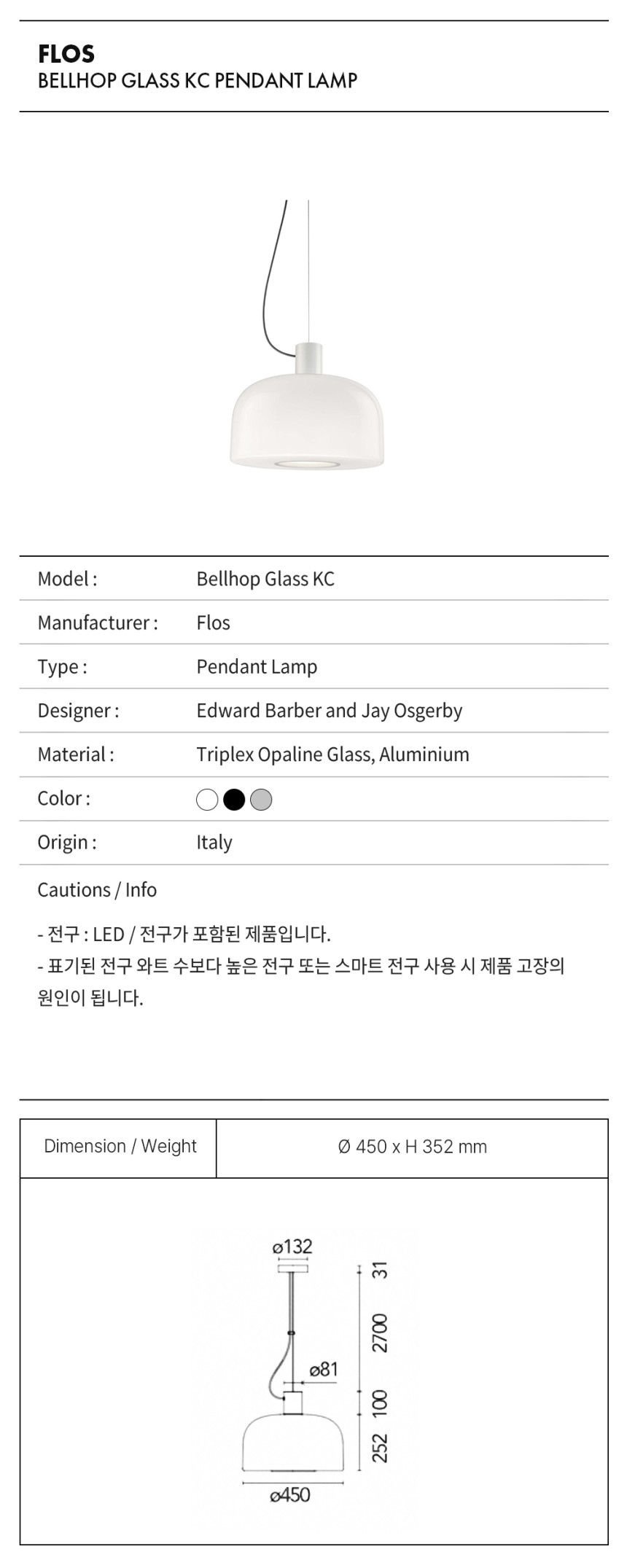 플로스 벨홉 글라스 KC 펜던트 조명 / Flos Bellhop Glass KC Pendant Lamp