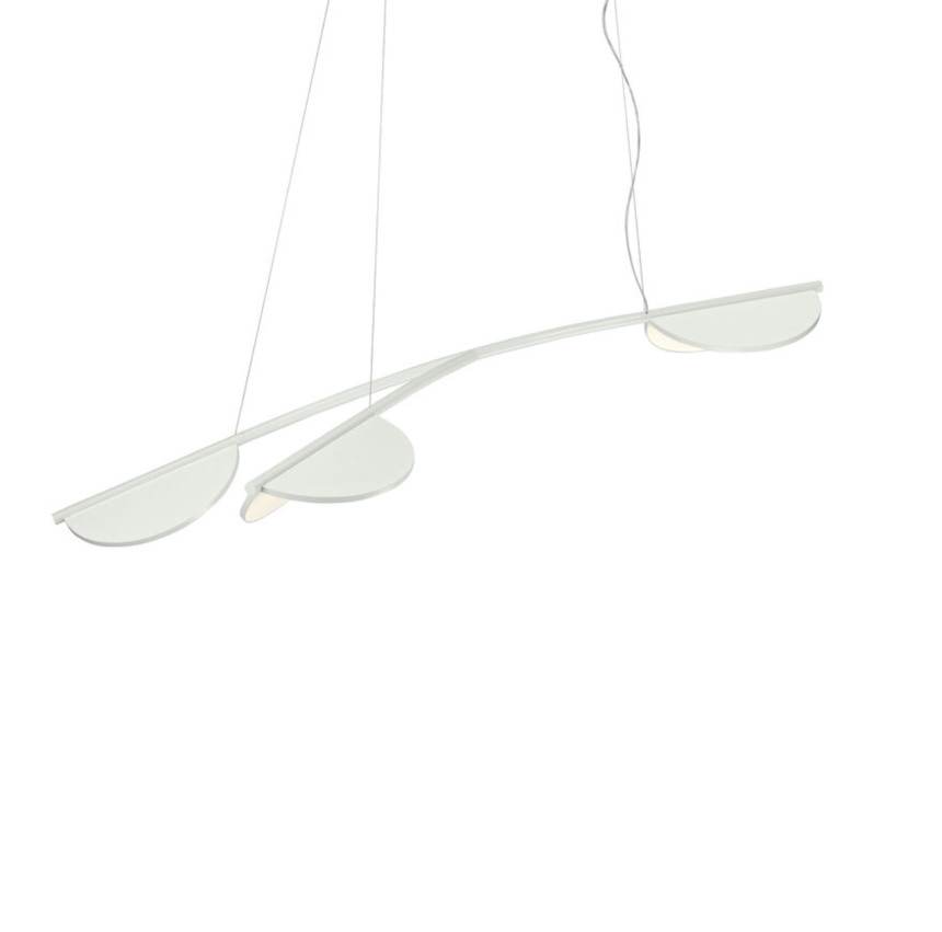 선형 및 유기적 구성으로 제공되는 확산형 발광 서스펜션 램프입니다. 알루미늄과 CNC 알루미늄 단자로 제작된 튜브형 구조이며, 무광 또는 금속 마감 처리가 되어 있습니다. 엣지 라이팅 기술이 통합되어 있습니다. 조명 유닛은 구조물 내에서 60도씩 회전하여 빛의 방향을 변경할 수 있습니다. 무광 흰색 마감의 금속 로제트입니다.